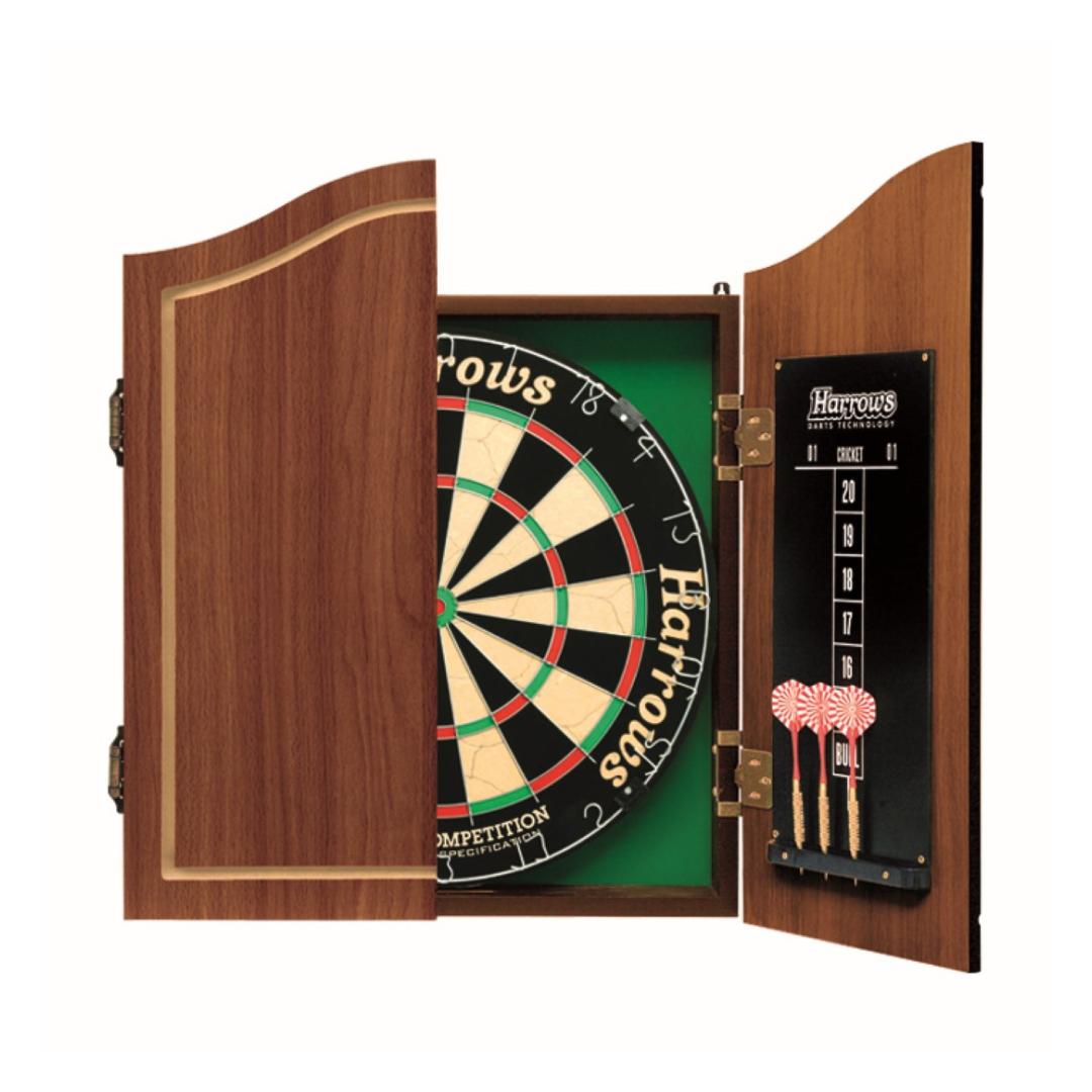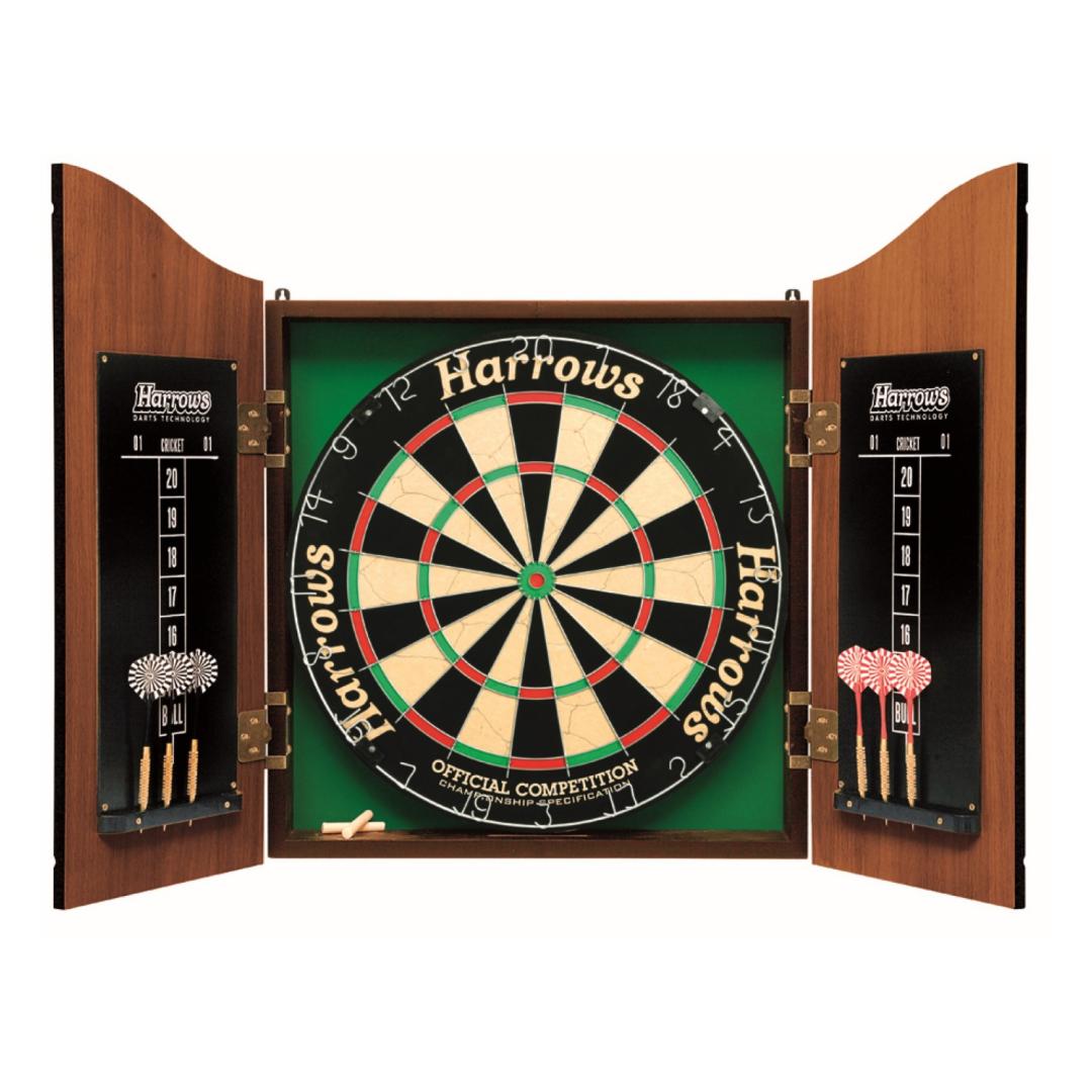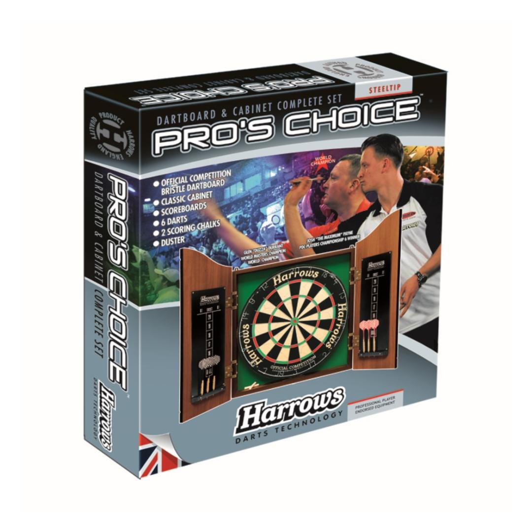 HARROWS Pro´s Choice professional dart set meets world-class competition standards. The kit includes a racing disc made of highly compressed sisal fiber that gives the surface a rough finish. This material has a high moisture resistance, is durable, and when the arrow is pulled out, the dartboard returns to its original shape without leaving traces. The playing fields are separated by high-quality steel wires. "Bull´s Eye" without additional fixings to reduce the rebound Disc is placed in a strong cabinet that perfectly decorates the interior and protects the walls from damage during the game.