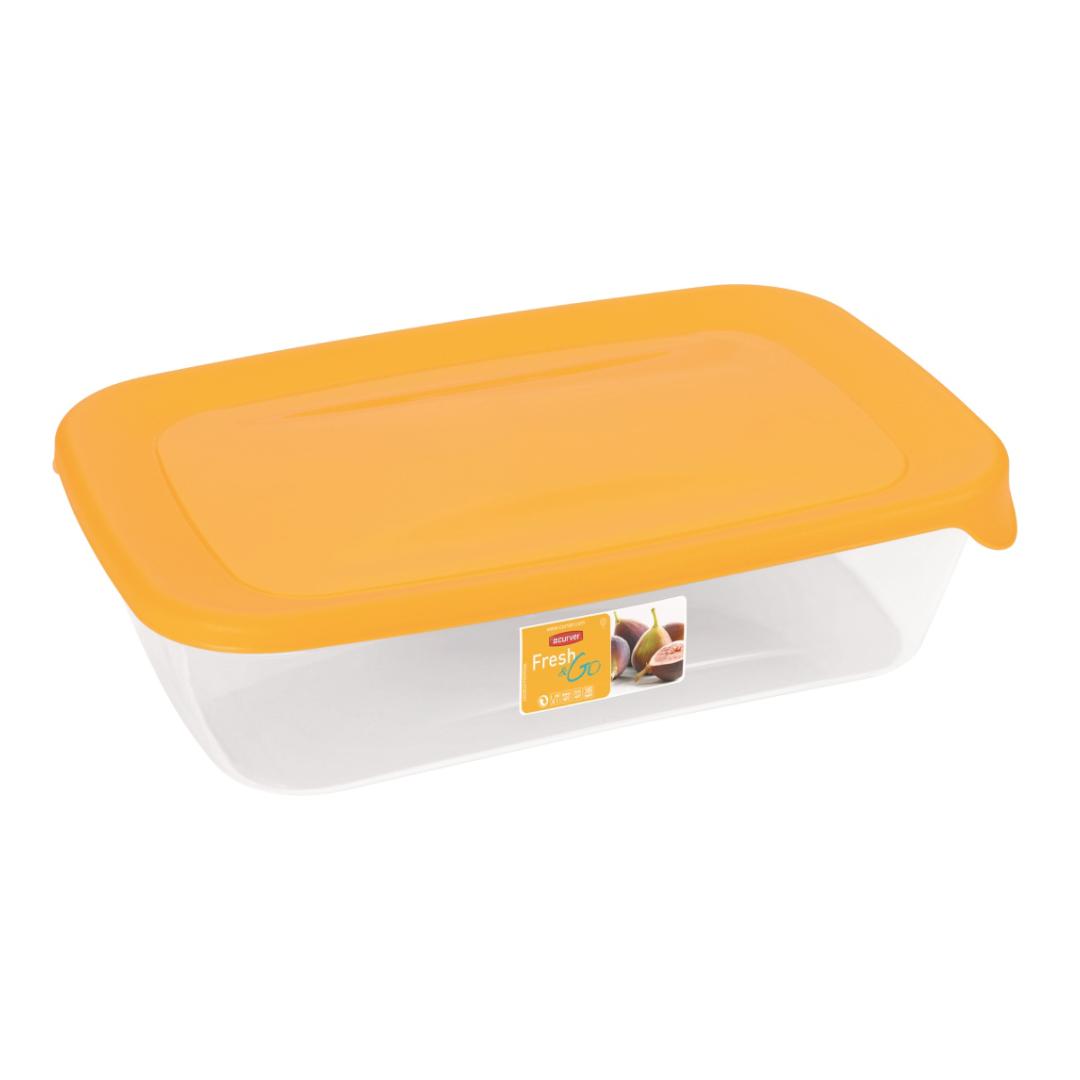 Strong box, with convenient opening corners. The box can be used to store food both during transportation and storage. Suitable for use in the refrigerator and freezer. The food box maintains an even temperature and helps the food stay fresh and tasty. The box is transparent, with a yellow lid, 22.8x14.8x6.2cm.