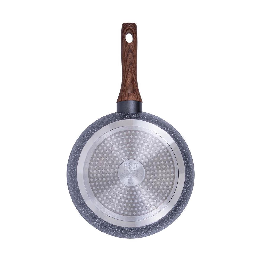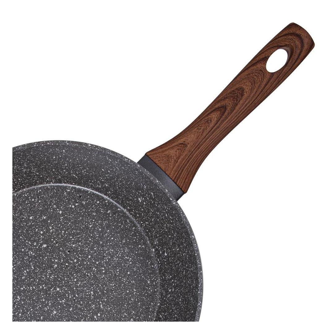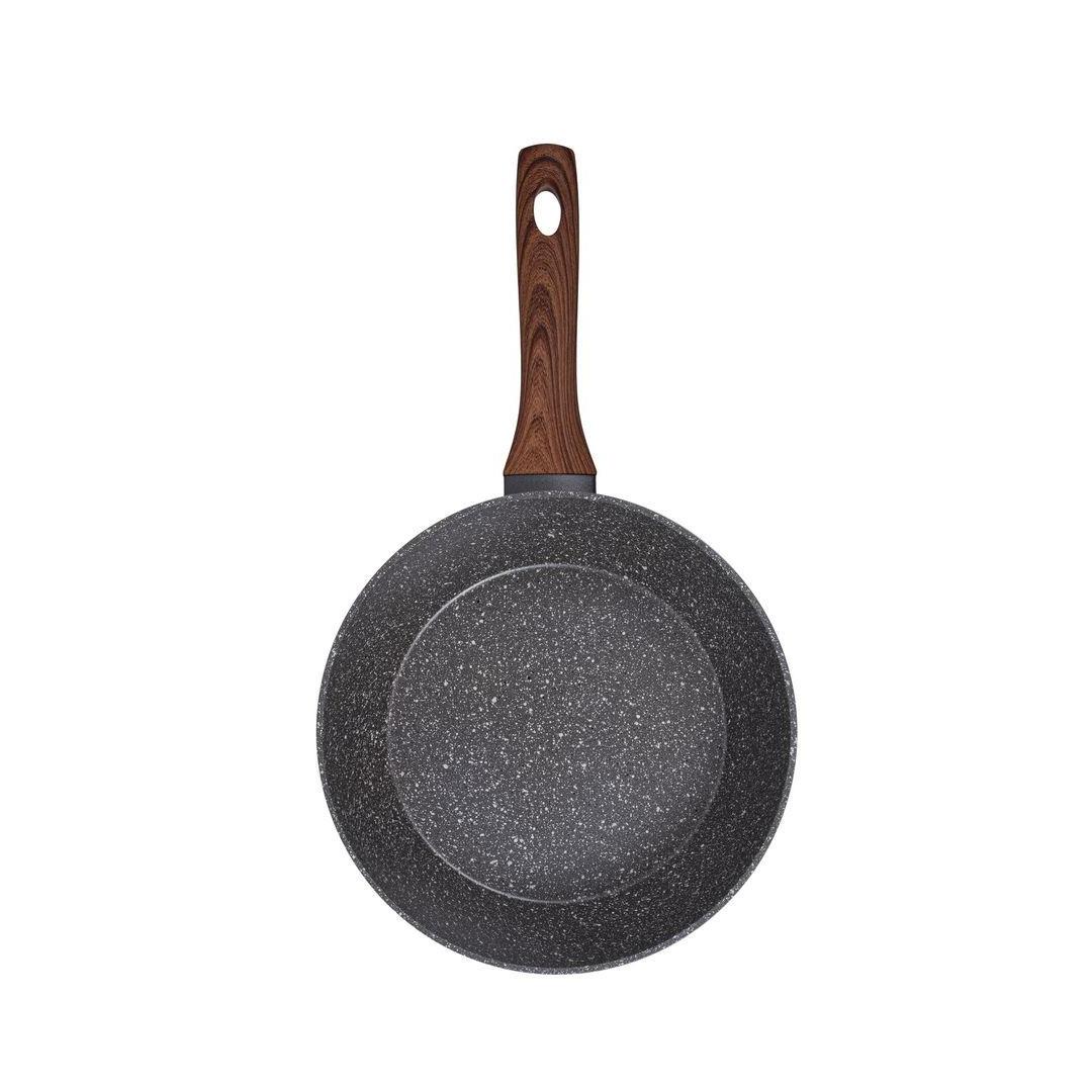 AQUILA 93053 Deep frying pan ⌀26, h=7.0cm Inner non-stick granite cover Ergonomic wooden soft-touch handle with hanging loop The bottom of the pan is reinforced with an anti-deformation disc Induction (suitable for all types of stoves) AQUILA 93053 Deep frypan ⌀26, h=7.0cm