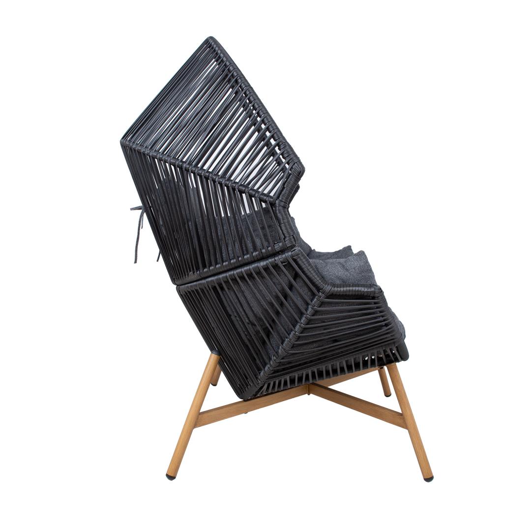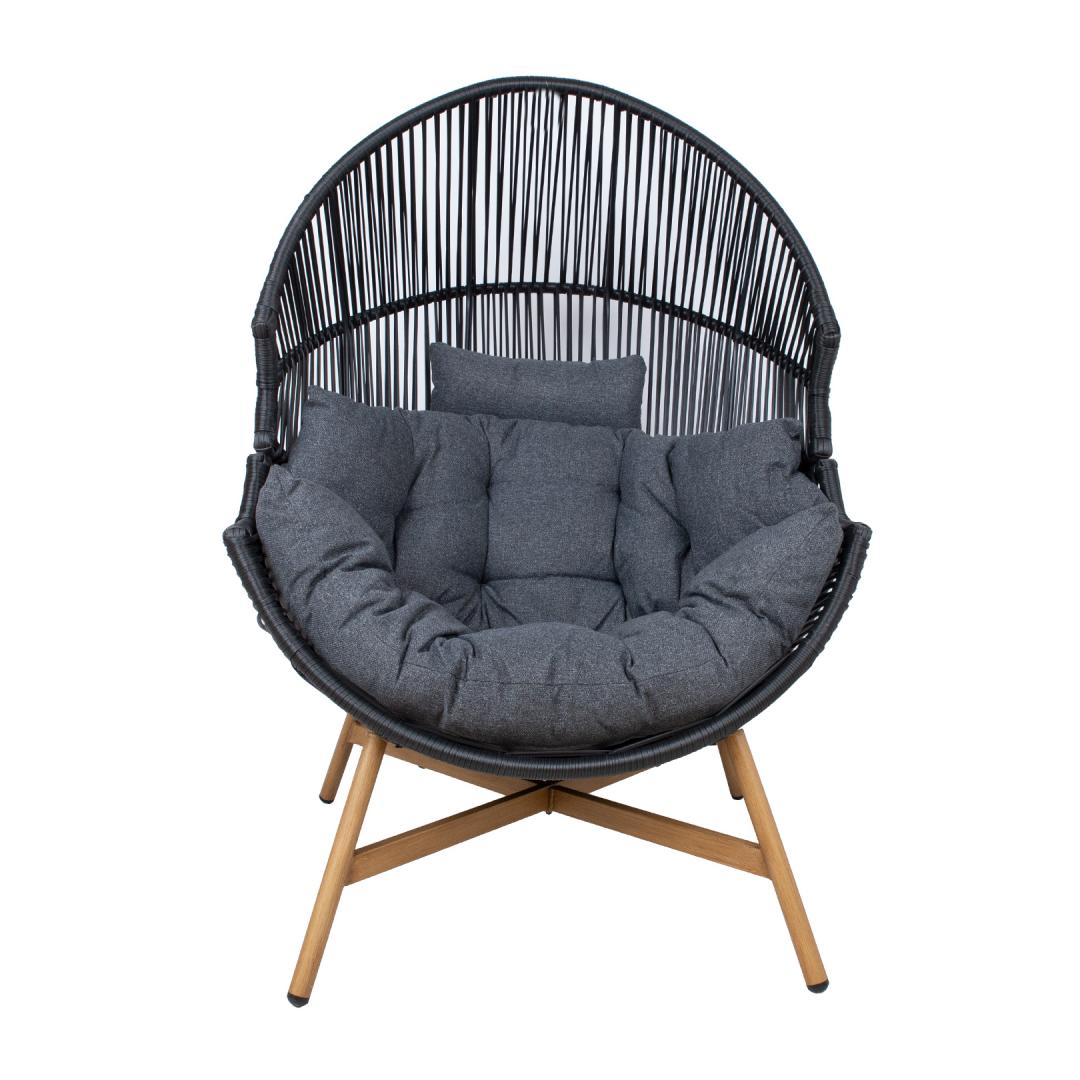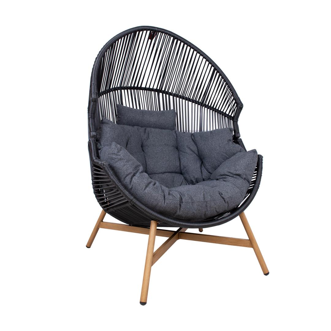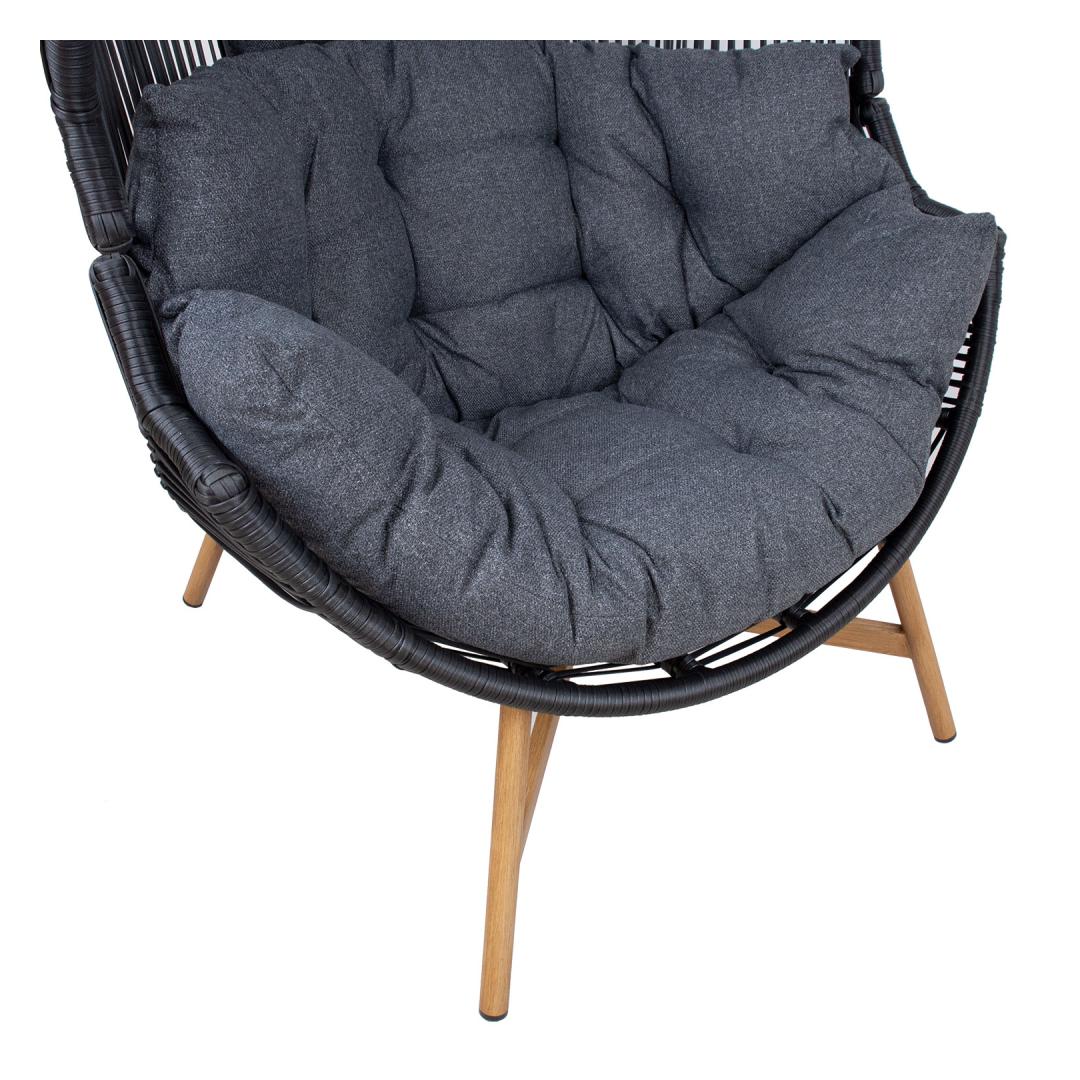 Leisure chair HELSINKI 98x101xH142cm, black. The frame and legs of the chair are made of steel. The seat is covered with an airy black plastic braid. Comfortable and soft seat cushions are included in the set. The cushion covers are made of dark gray polyester fabric. The legs and the base frame of the chair are hand-brush painted in a beige color reminiscent of teak wood. Weight limit 120kg. The product is durable in changing weather conditions and very easy to maintain, only cushions need protection from the weather. To prolong the lifespan of outdoor furniture, we recommend the use of outdoor furniture covers. STORAGE: at the end of the summer season, we recommend storing the garden furniture indoors. Clean and dry the furniture before storing it. Use a dry, well-ventilated room for storage. Puhketool HELSINKI 98x101xH142cm, must. Tooli raam ja jalad on valmistatud terasest. Istme osa on kaetud õhulise musta plastikpunutisega. Mugavad ja pehmed istmepadjad kuuluvad komplekti. Padjakatted on valmistatud tumehallist polüesterkangagast. Tooli jalad ja alusraam on käsitsi värvitud tiikpuud meenutava beeži värviga. Kaalupiirang 120kg. Toode on muutlikes ilmastikutingimustes hästi vastupidav ja lihtsalt hooldatav. Kaitset ilmastikuolude eest vajavad ainult padjad. Välitingimustes kasutatava mööbli eluea pikendamiseks soovitame kasutada välimööbli katteid. HOIUSTAMINE: suvehooaja lõppedes soovitame aiamööblit hoiustada siseruumides. Puhastage ja kuivatage mööbel enne hoiule panekut. Kasutage hoiustamiseks kuiva ning hea ventilatsiooniga ruumi.
