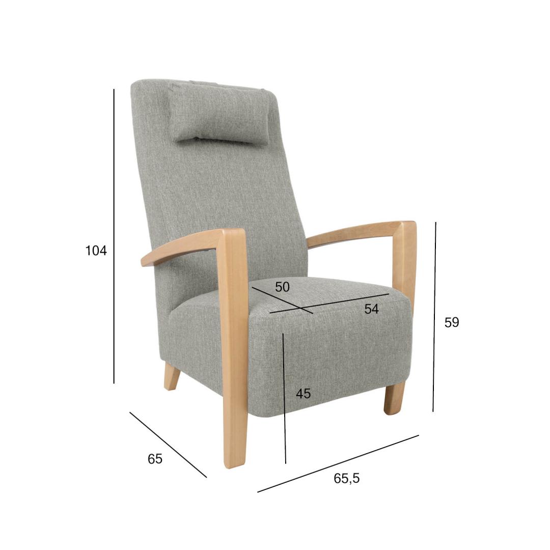 Armchair VENLA beige. A truly soft and inviting armchair with bright solid wooden armrests is an excellent choice for creating a comfortable seating area. The seat frame is made of birch plywood and solid wood and padded with durable PU foam. The seat is covered with high-quality furniture fabric, Martindale value 90 000 - 100 000. The small extra cushion on the headrest is removable and its height can be adjusted. The cushion cover is removable and washable. The overall dimensions of the armchair are 65,5x65xH104cm. Seat width 54cm, seat depth 50cm. Backrest height 77cm. The height of the armrest from the ground is 59 cm. The armchair is manufactured in Estonia. Tugitool VENLA beež. Heledate täispuidust käetugedega, tõeliselt pehme tugitool on suurepärane valik mugava istumisnurga kujundamiseks. Istme karkass on valmistatud kasevineerist ja täispuidust. Polsterduseks on kasutatud vastupidavat porolooni. Iste on kaetud kvaliteetse mööblikangaga, Martindale'i väärtus 90 000 - 100 000. Väike lisapadi peatoel on eemaldatav ja selle kõrgust saab reguleerida. Padja kate on eemaldatav ja pestav. Tugitooli üldmõõdud on 65,5x65xH104cm. Istme laius 54cm, istme sügavus 50cm. Seljatoe kõrgus 77cm. Käetoe kõrgus maast 59cm. Tugitool on toodetud Eestis.