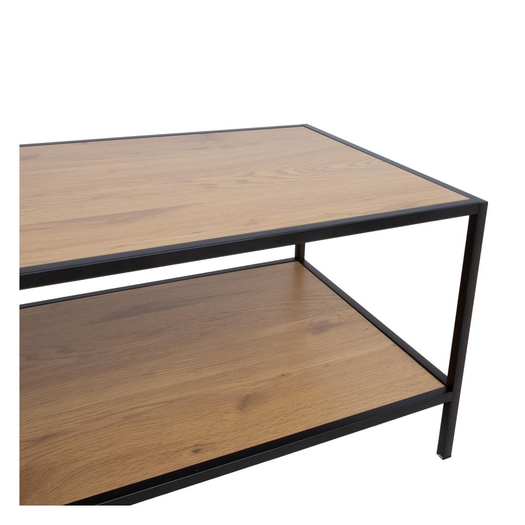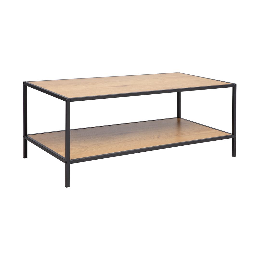 Coffee table HEDVIG 100x50xH40cm, ash/black. Tabletop and bottom shelf: melamine board with ash decor. The legs and frame of the table are made of metal and finished with black powder coating. Diivanilaud HEDVIG 100x50xH40cm, saar/must. Lauaplaat ja alumine riiul: saare dekooriga melamiinplaat. Laua jalad ja raam on valmistatud metallist ja viimistletud musta pulbervärviga.