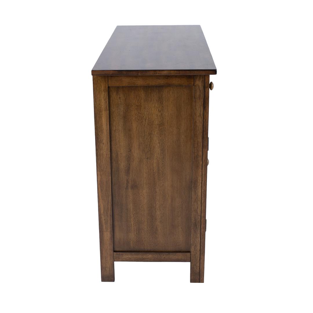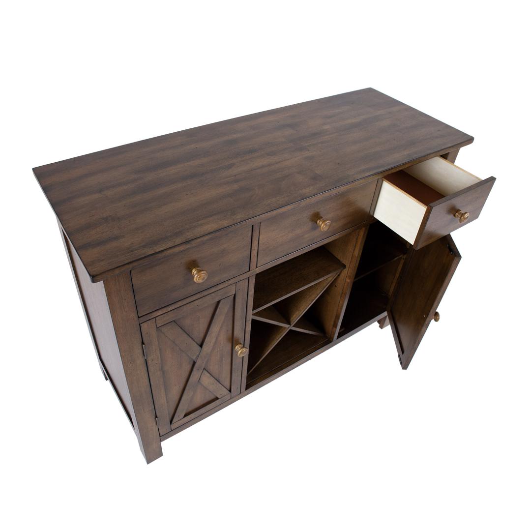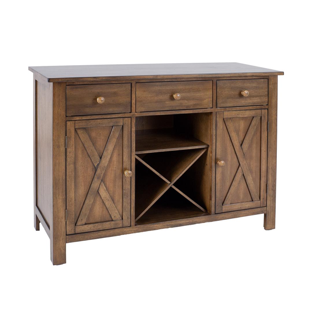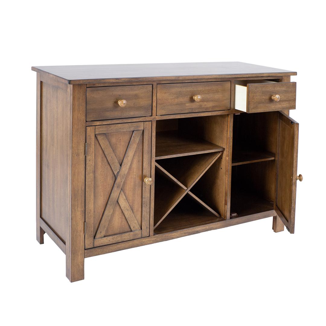 Sideboard JAMES 120x46xH91cm. The main structure and base frame of the sideboard are made of rubber wood. The side panels, partitions, and front panels of the drawer are made of furniture board. With a slightly aged look, the rustic sideboard is finished with a dark stain and varnish. The drawers are without rails. There is 1 intermediate shelf behind the cabinet doors. The width of the shelf is 40cm and the depth is 40cm. Kummut JAMES 120x46xH91cm. Kummuti põhikonstruktsioon ja alusraam on valmistatud kummipuust. Küljepaneelid, vahesinad ja sahtli esipaneel on valmistud mööbliplaadist. Kergelt vanutatud välimusega, rustikaalne kummut on viimistletud tumeda peitsi ja lakiga. Sahtlid on ilma siinideta. Kapi uste taga on 1 vaheriiul. Riiuli laius on 40cm ja sügavus 40cm.