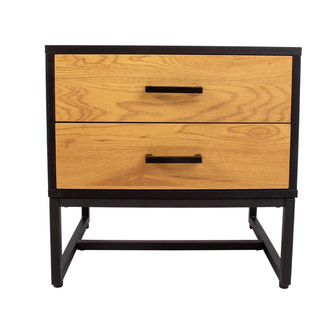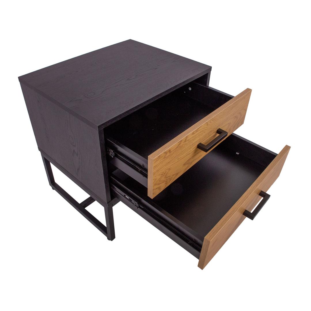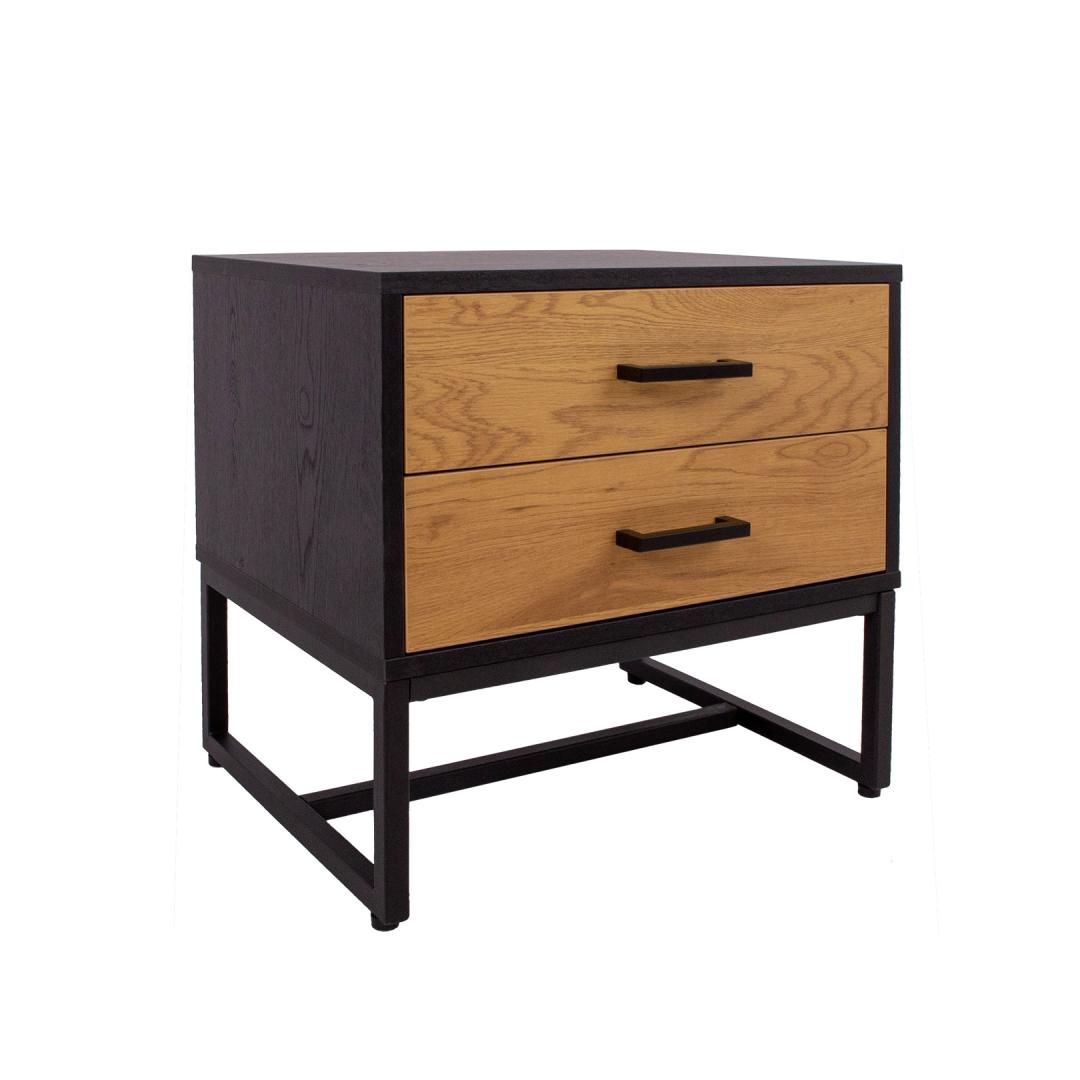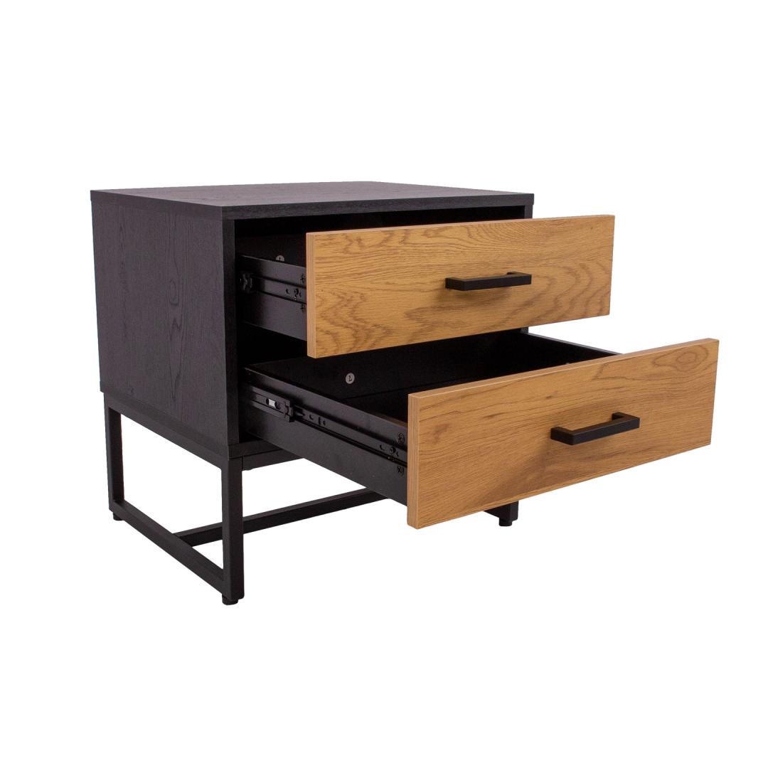 Night stand AMSTERDAM 50x40xH50cm. Material: melamine board, color: oak/black. Black metal base frame. Soft closing drawer glides. Black aluminum handles. Öökapp AMSTERDAM 50x40xH50cm. Materjal: melamiinplaat, värvus: tamm/must. Must metallist alusraam. Vaikselt sulguvad sahtlisiinid. Mustad alumiiniumust käepidemed.