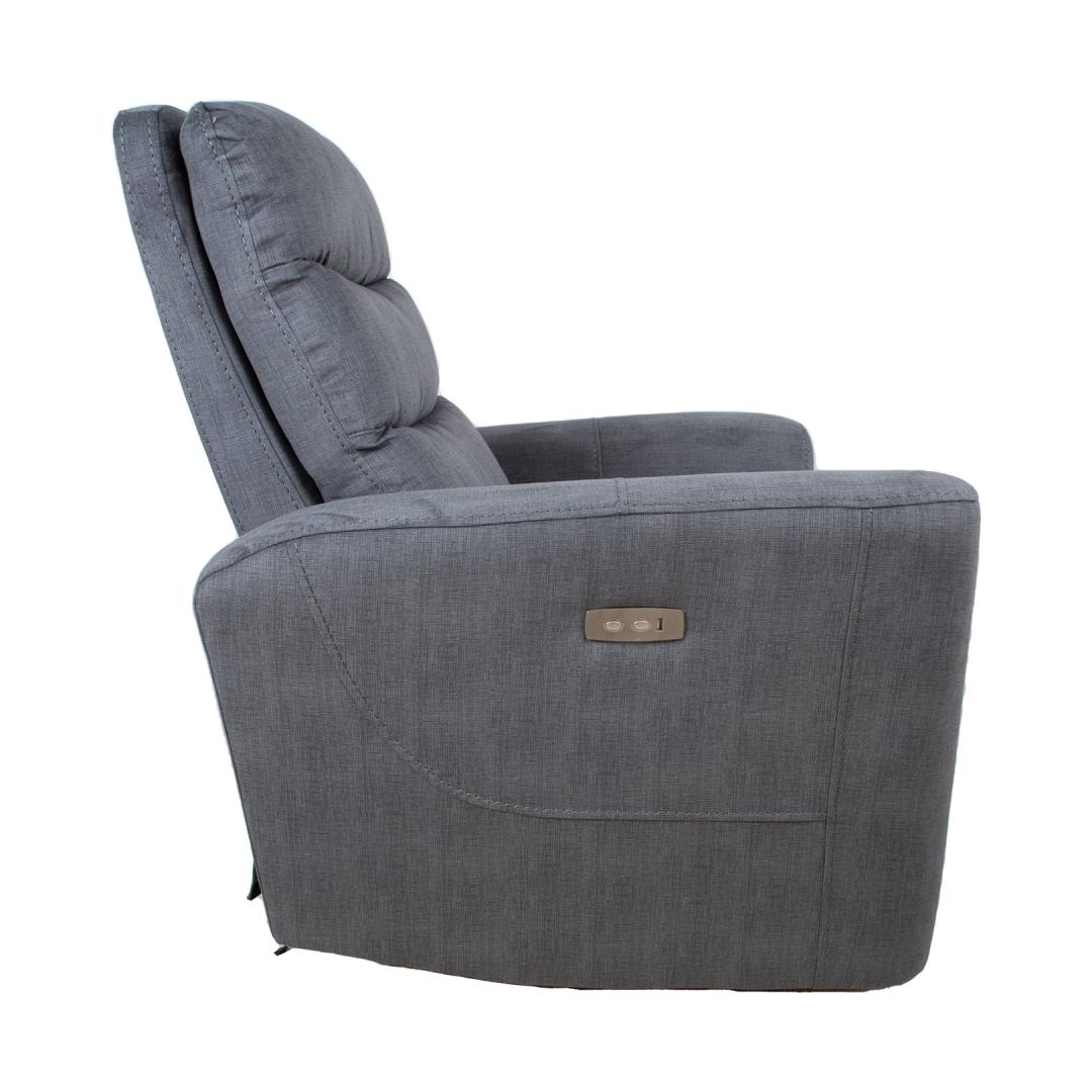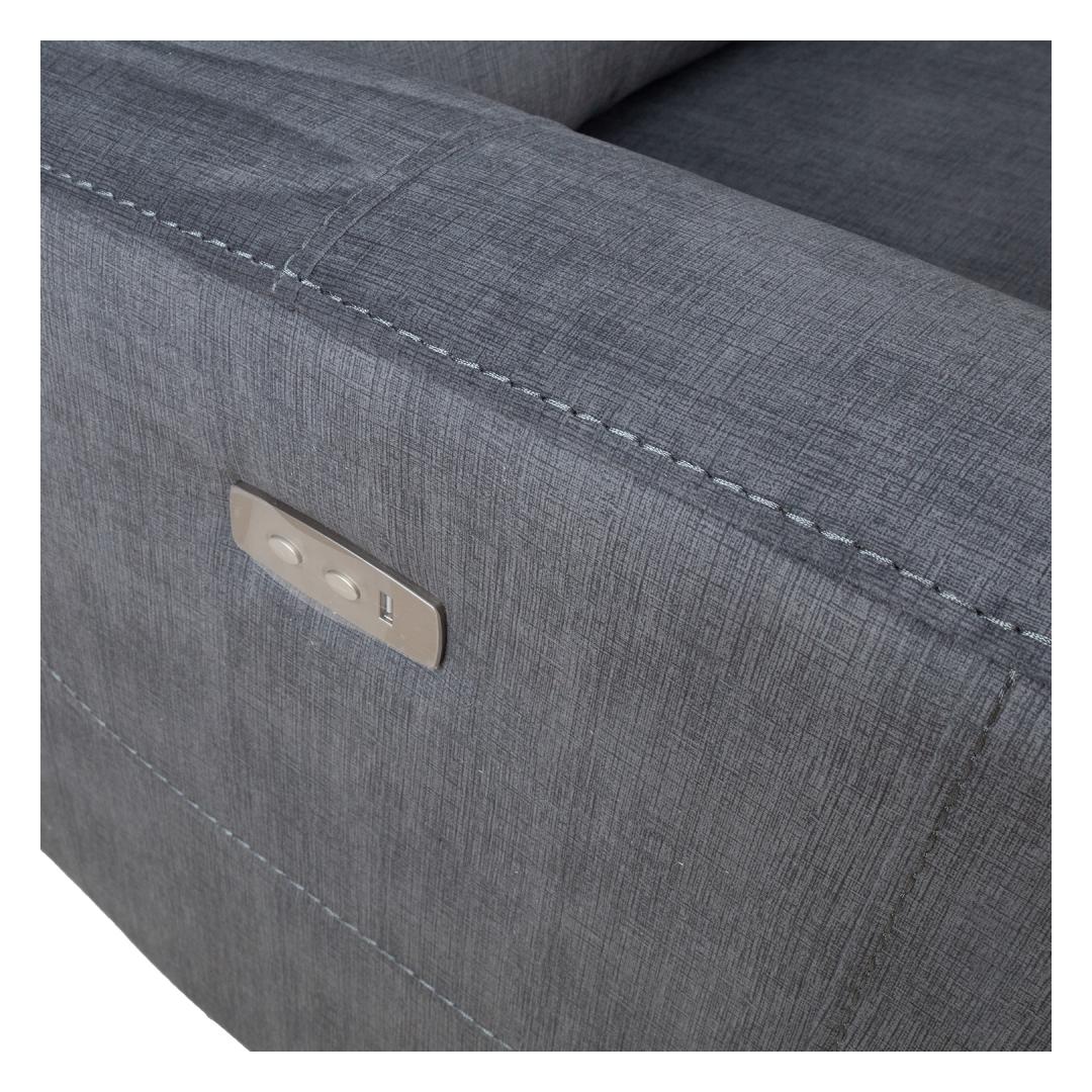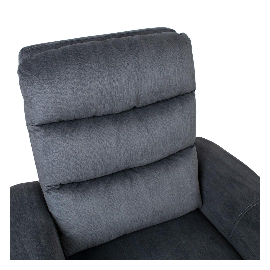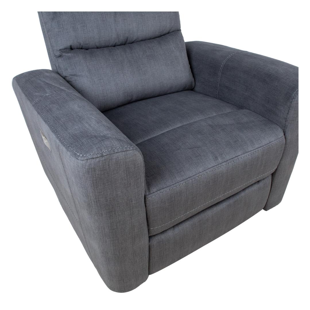 Recliner armchair GASTON with electric mechanism 92x85xH104cm, grey velvet. The position of the footrest can be changed by an electric mechanism. When the footrest is raised, the backrest moves smoothly along. Cover material: 100% polyester fabric. Frame and suspension: plywood, wood, metal. Pocket springs. Upholstery: polyurethane foam 20-28kg/m³. The overall dimensions of the armchair are 92x85xH104cm. Seat width 55cm, seat depth 50cm, seat height 49cm. Backrest height 66cm. The height of the armrest from the ground is 63cm. The back of the armchair is finished and it can be placed in the center of the room. Tugitool GASTON elektriline recliner 92x85xH104cm, hall samet. Recliner tüüpi tugitooli jalatoe asendit on võimalik muuta elektrilise mehhanismi abil. Jalatuge üles tõstes liigub seljatugi sujuvalt kaasa. Kattematerjal: 100% polüesterkangas. Karkass ja vedrustus: puit, vineer ja metall. Pocket vedrud. Polsterdus: polüuretaanvaht 20-28kg/m³. Tugitooli üldmõõdud on 92x85xH104cm. Istme laius 55cm, istme sügavus 50cm, istme kõrgus 49cm. Seljatoe kõrgus 66cm. Käetoe kõrgus maast 63cm. Tugitooli tagakülg on viimistletud ja see on ruumi keskele paigutatav.