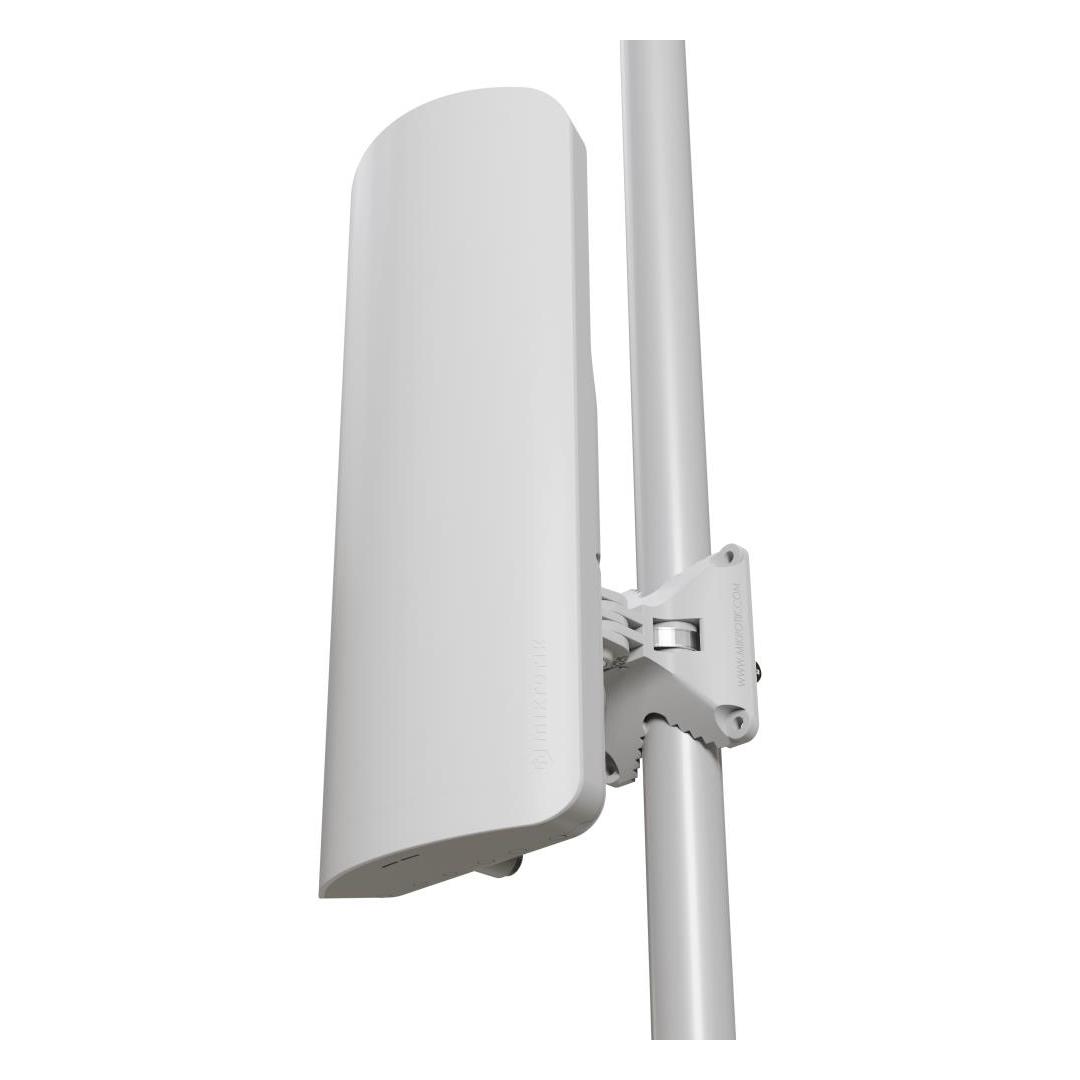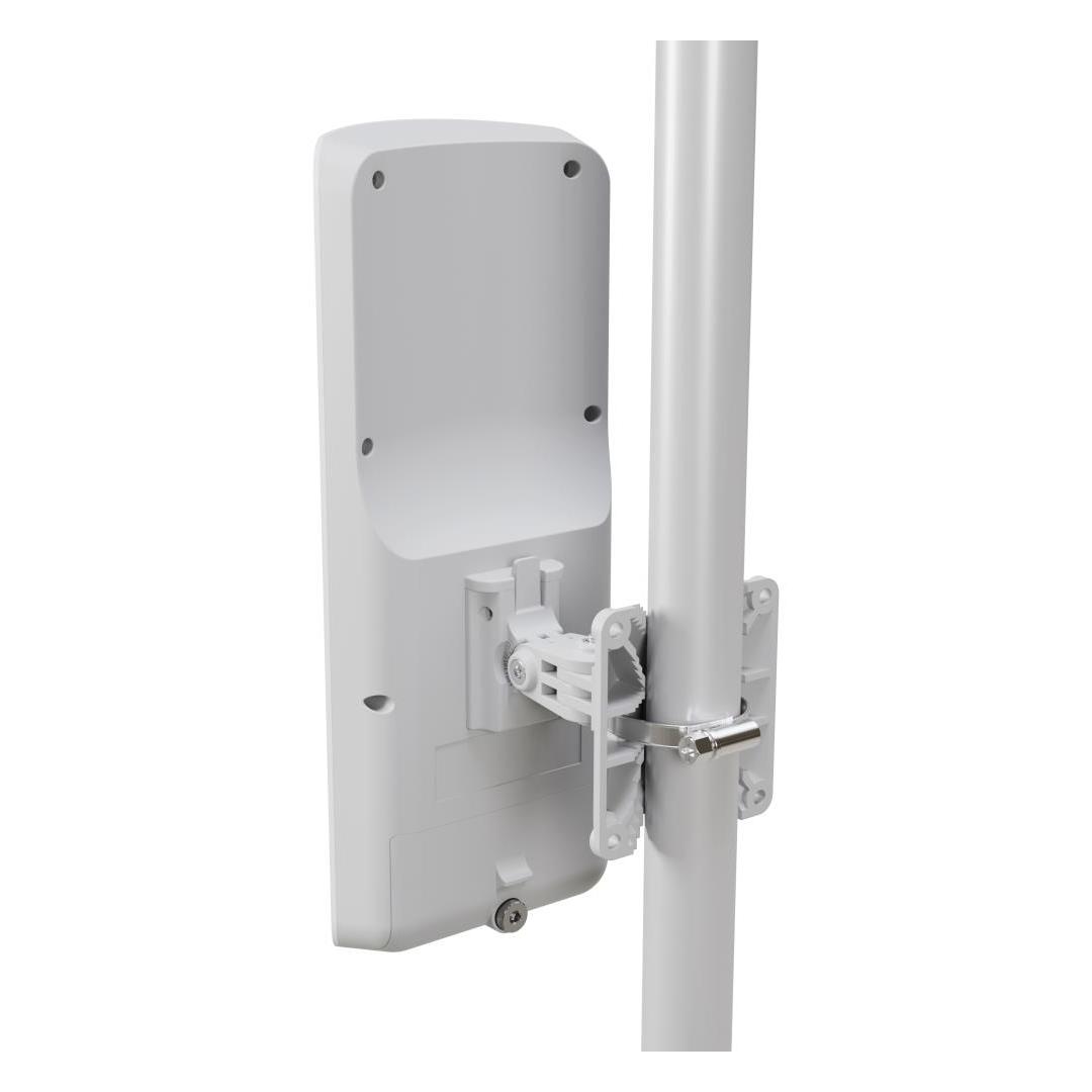 Managing outdoor wireless network has never been easier: mANTBox ax 15s can provide unparalleled wireless point-to-multipoint connectivity for a vast variety of devices over a distance of 20 kilometers! A potent combination of modern dual-core ARM CPUs, our latest 802.11ax Wi-Fi 6 dual-band radios and powerful built-in sector antennas will take your signal stability, speed, and responsiveness to the next level! There’s a Gigabit Ethernet port with PoE-in and an SFP port with 2.5 Gigabit support for extra fast fiber uplinks. Upgrading your setup to Wi-Fi 6 offers multiple benefits: Speed: we’ve seen up to 40% higher speed in the 5 GHz spectrum and up to 90% higher speed in the 2.4 GHz spectrum. Security: WPA3 encryption and management frame protection prevent all sorts of attacks, like bruteforcing and WPA2 handshakecapture deauthentication attacks Reliability: seamless fast transition (roaming) enables smooth, non-stop signal when you have to switch between access points. Also, Wi-Fi 6 ensures a fair traffic distribution if the connection is shared by a large number of users. Energy efficiency: features like Target Wake Time reduce power consumption in the long run. Better for your wallet and the planet! mANTBox package includes everything you need: a Gigabit PoE injector, a power supply, a hose clamp and a fastening set, and the MikroTik quickMOUNT pro. This advanced wall mount adapter allows turning antenna within 140° both horizontally and vertically. With the quickMOUNT pro it is possible to perfectly set antenna alignment using an integrated graduated scale.