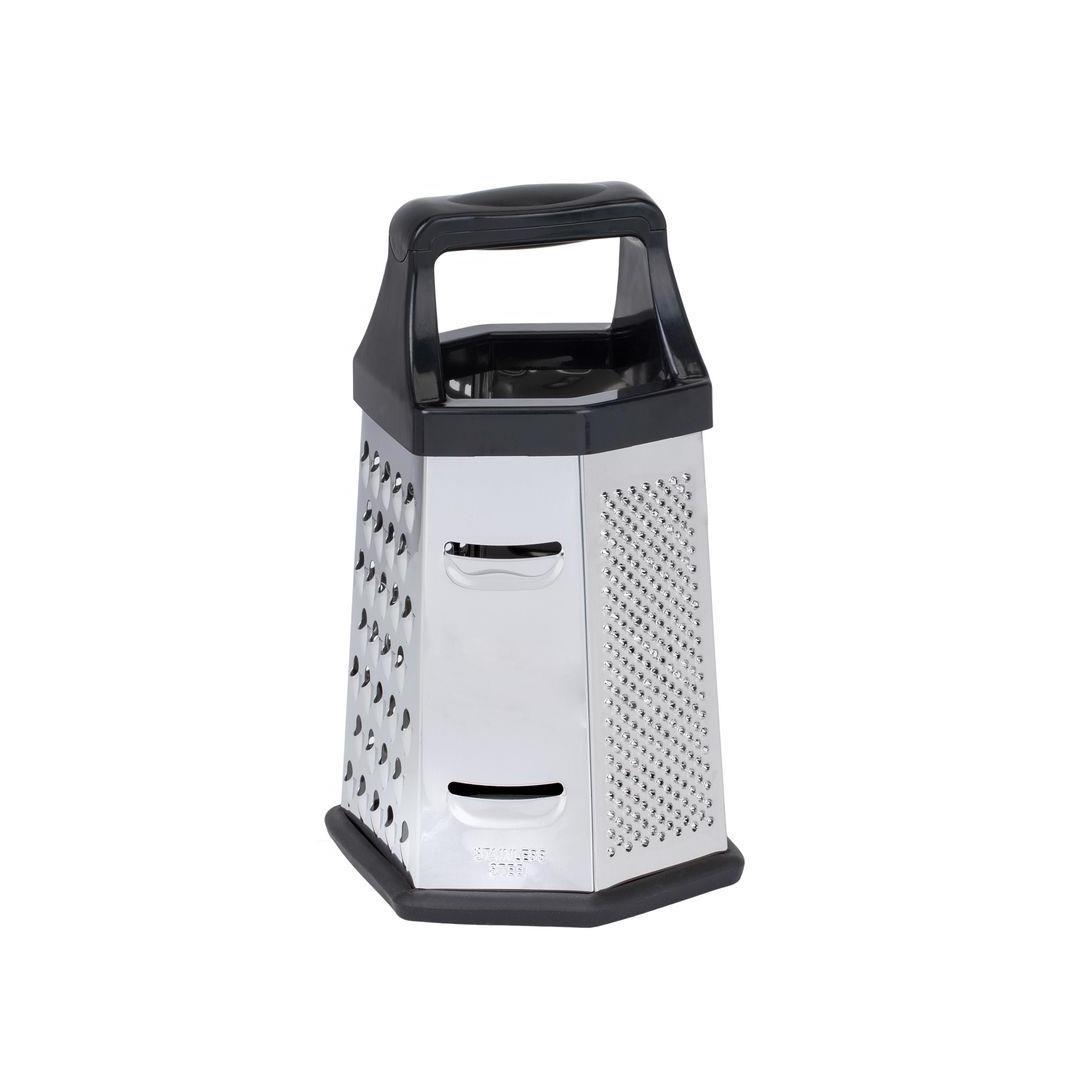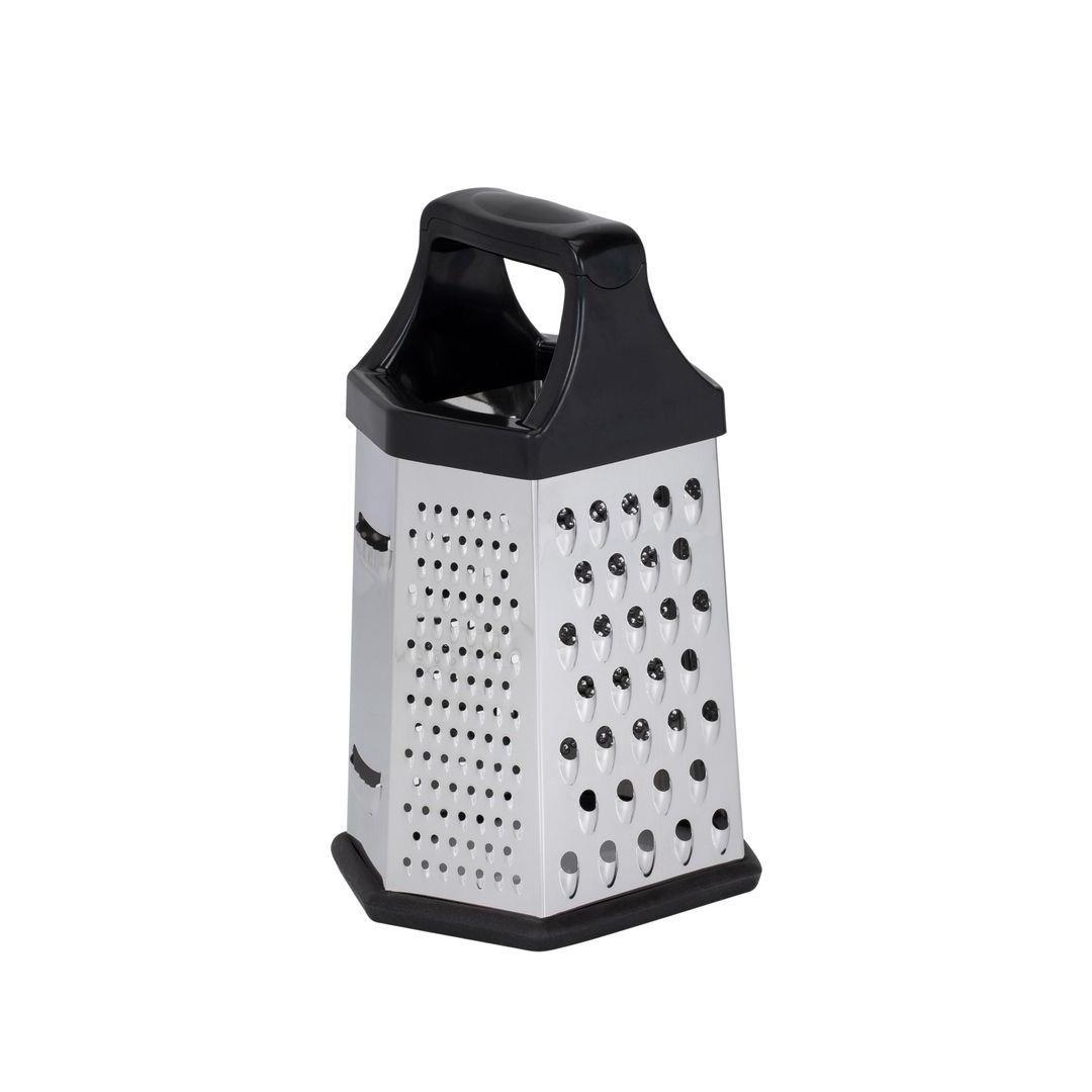 Solidly constructed, with rigid sides and a base that won’t easily slide out from under you, Sham graters will provide all the flakes, shreds, and shards you’ll ever need. Each side has a different size grating surface which grates evenly and effortlessly across its entire perforated surface.