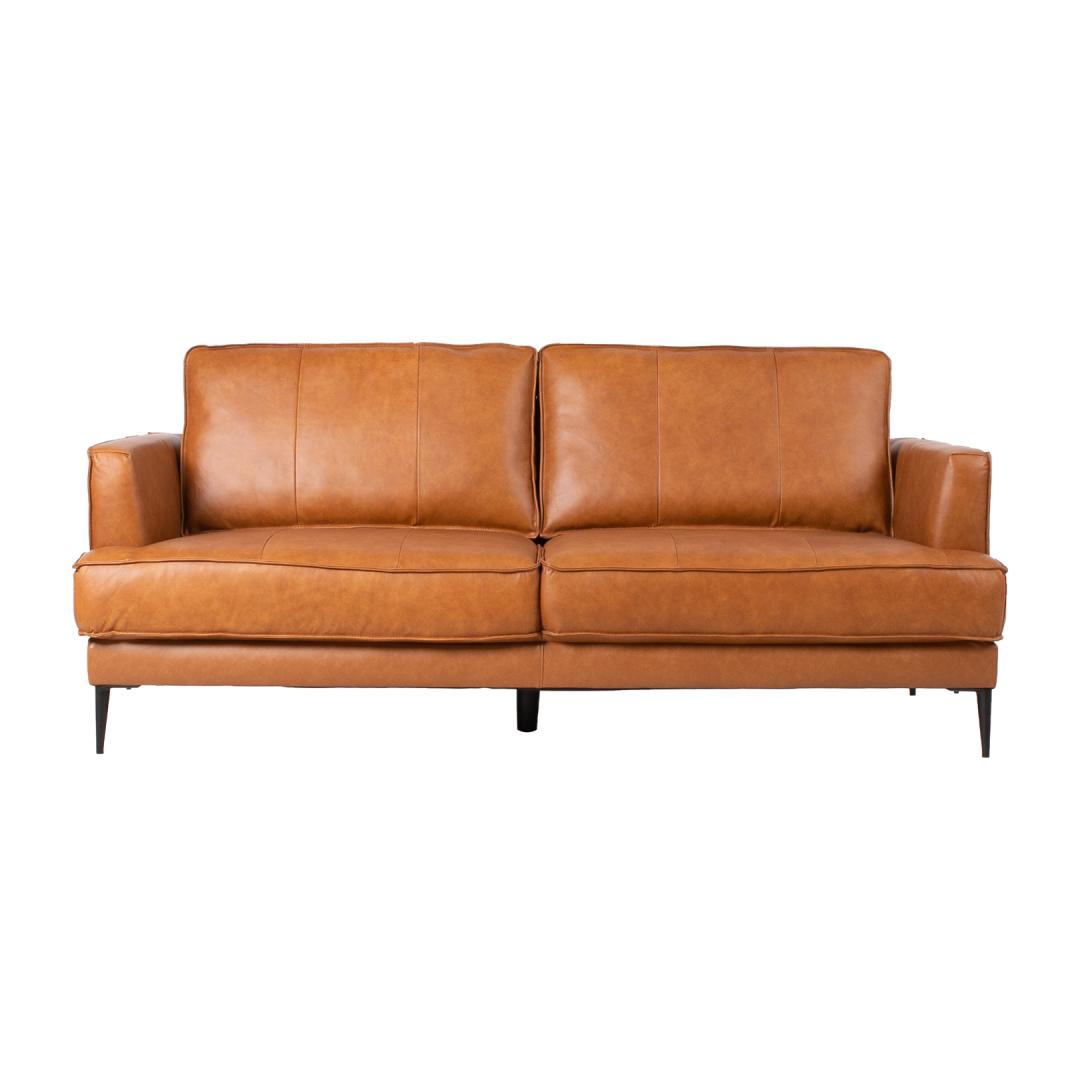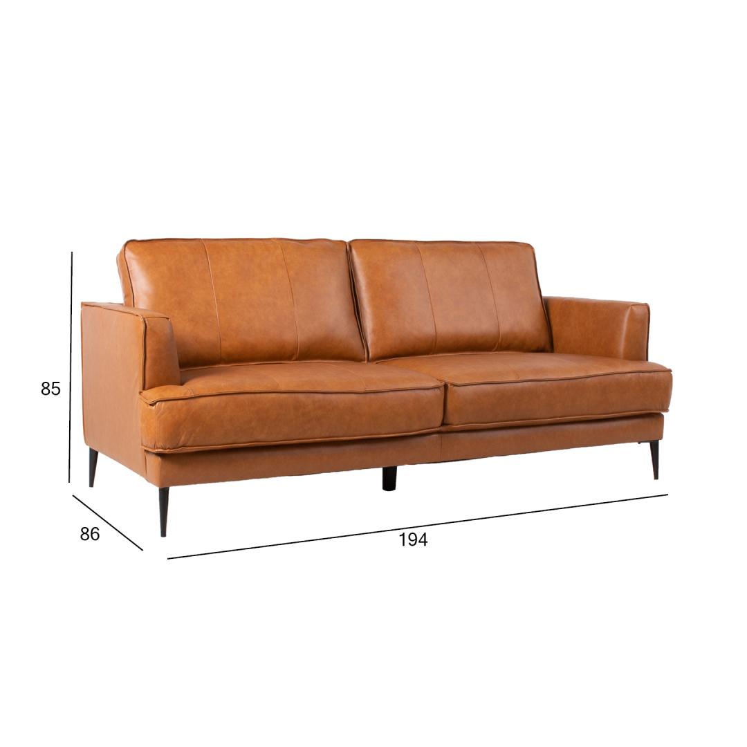 Sofa LEO 3-seater, light brown. Cover material is natural cow leather and imitation leather. The frame is made of solid eucalyptus wood and plywood. The product has pocket springs. Upholstery: PU foam. The legs are made of metal. The dimensions of the product are 194x86xH85cm. Diivan LEO 3-kohaline, helepruun. Kattematerjal on naturaalne lehmanahk ja kunstnahk. Karkass on valmistatud eukalüpti täispuidust ja vineerist. Tootel on pocket vedrud. Polsterdus: polüuretaanvaht. Diivanil on metallist jalad. Toote mõõdud on 194x86xH85cm.
