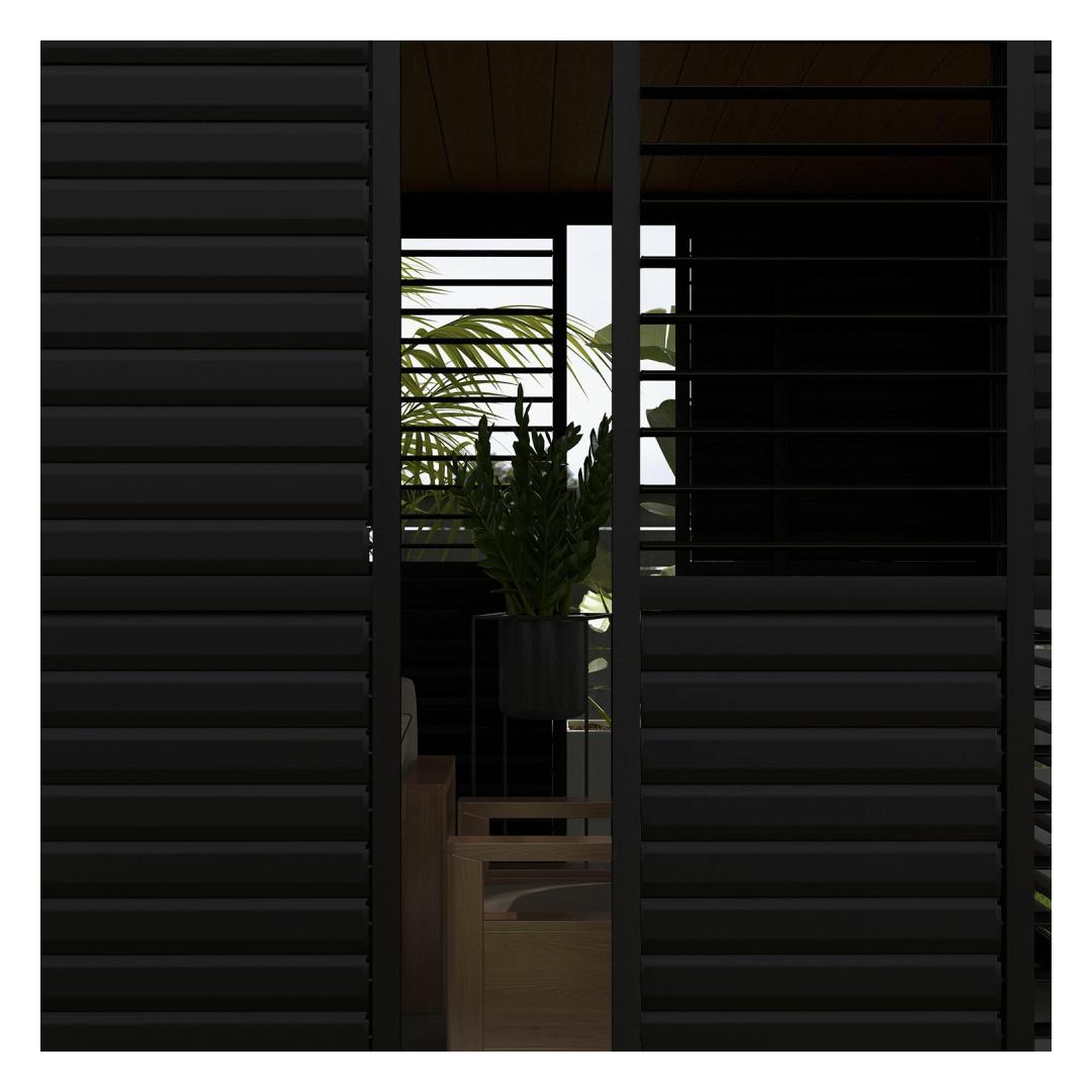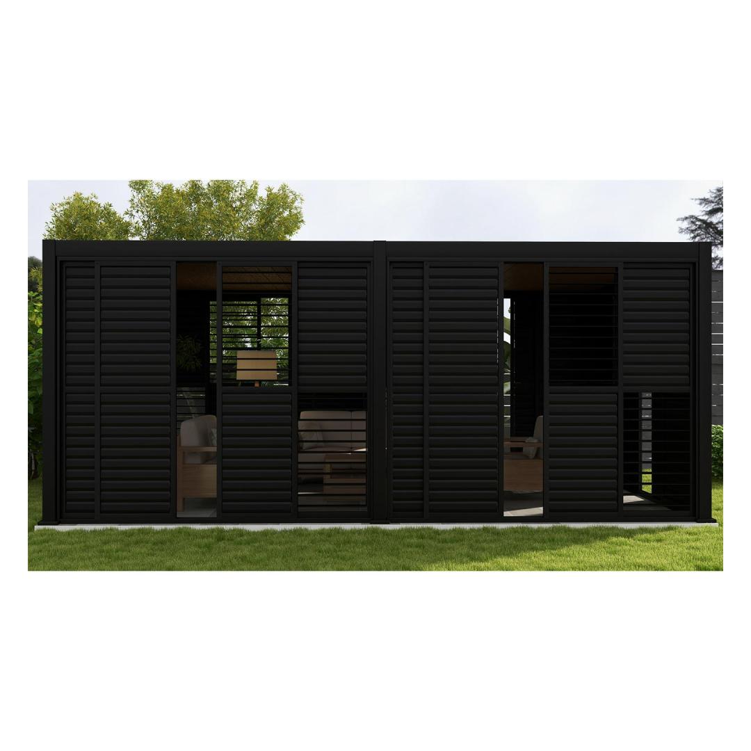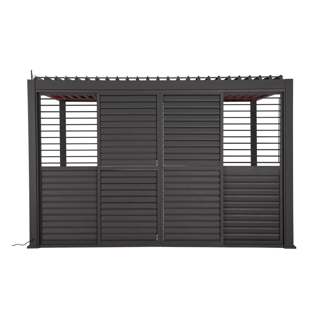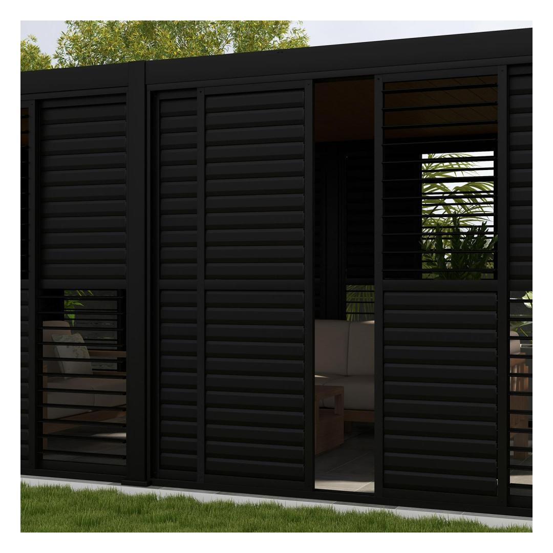 Louver sliding wall for the 3-m side of the gazebo MIRADOR-111, dark grey. The dimensions of the wall panel are 2790x2365mm. The dimensions of the horizontal pole are 95x73,9x1,5x1395mm/53x35,5x1,5x688mm/58x35x1,5x688mm. The dimensions of the side pole are 46,5x39x1,5x2296mm. The dimensions of the lamella are 102x15x1x598mm. The wall is made of aluminum and covered with a dark gray powder coating. Check out the other selection of curtains and side walls offered for MIRADOR-111 canopies! Lamell-lükandsein varikatuse MIRADOR-111 3m küljele, tumehall. Seinapaneeli mõõdud on 2790x2365mm. Horisontaalposti mõõdud on 95x73,9x1,5x1395mm/53x35,5x1,5x688mm/58x35x1,5x688mm. Küljeposti mõõdud on 46,5x39x1,5x2296mm. Lamelli mõõdud on 102x15x1x598mm. Sein on valmistatud alumiiniumist ja kaetud tumehalli pulbervärviga. Tutvuge ka teiste MIRADOR-111 varikatustele pakutavate kardinate ja küljeseinte valikuga!