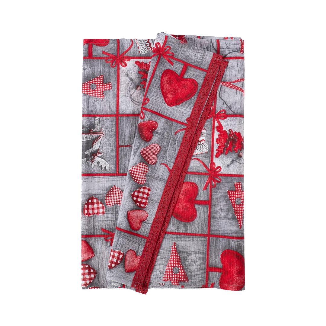 Linik WINTER FLOWERS pitsiga, 43x116cm, südamed, 50% puuvill, 50%polüester, kangas 385