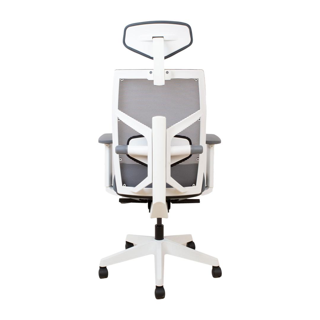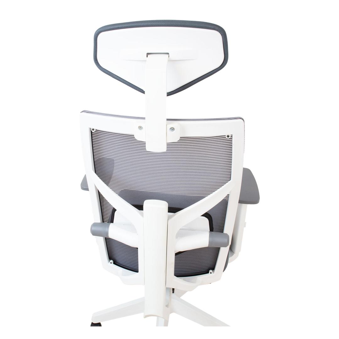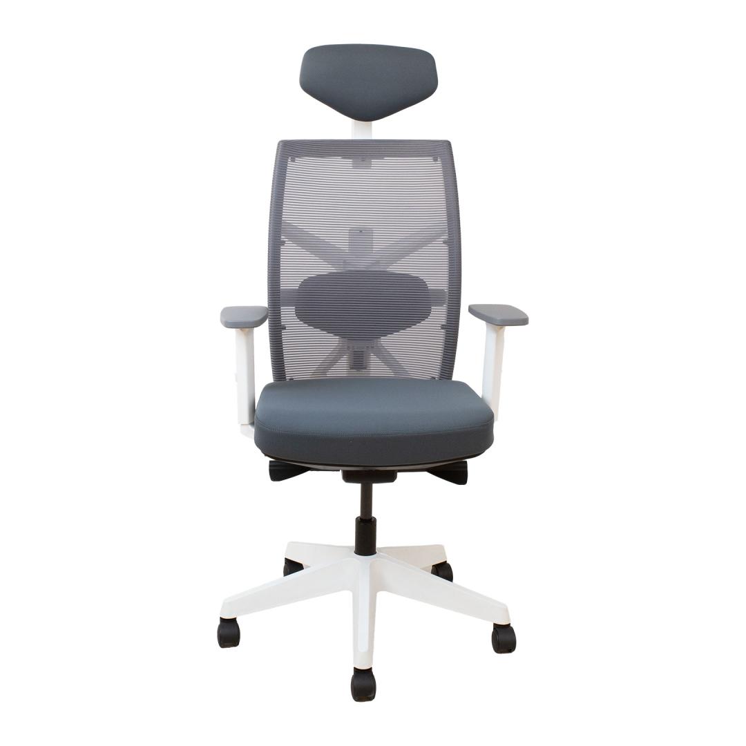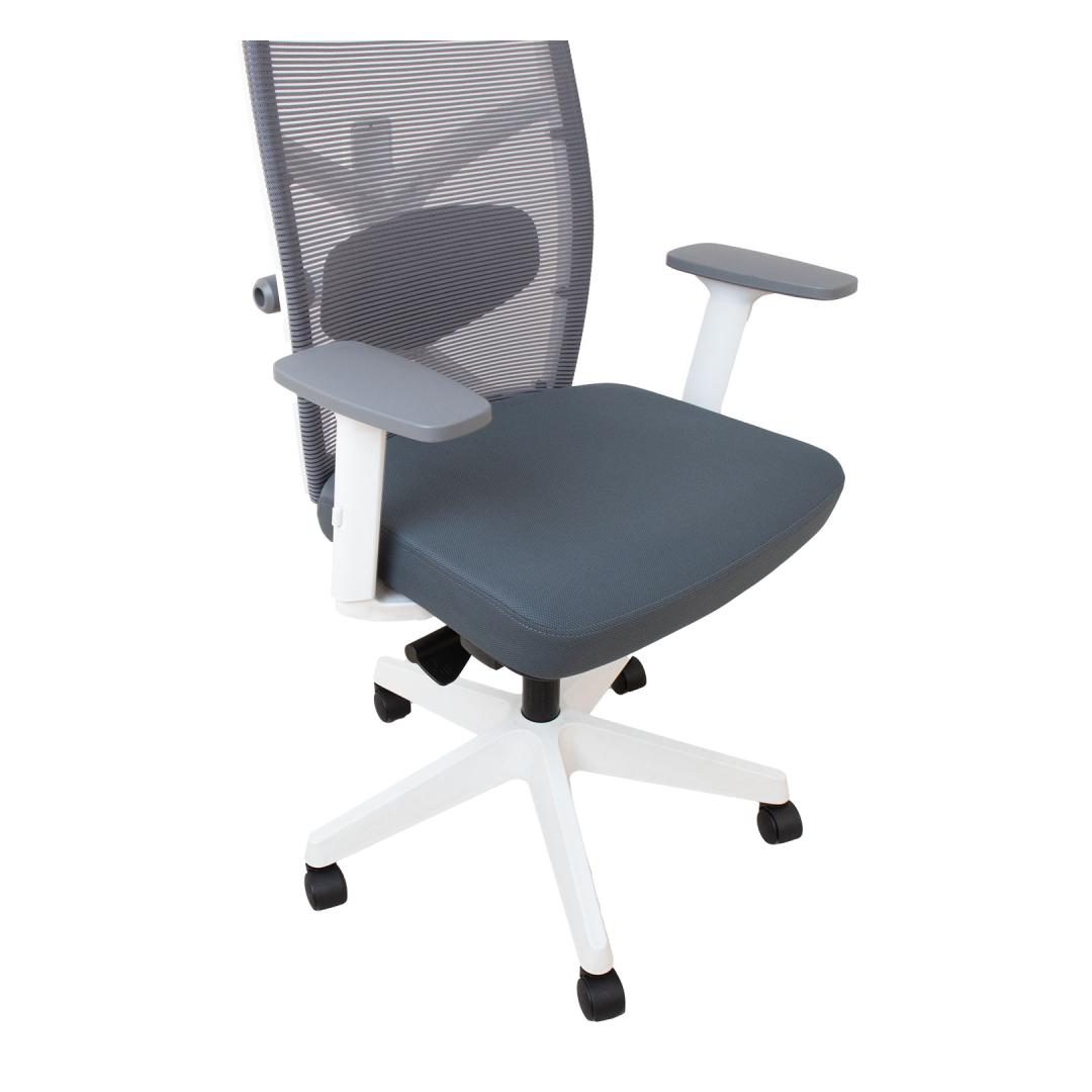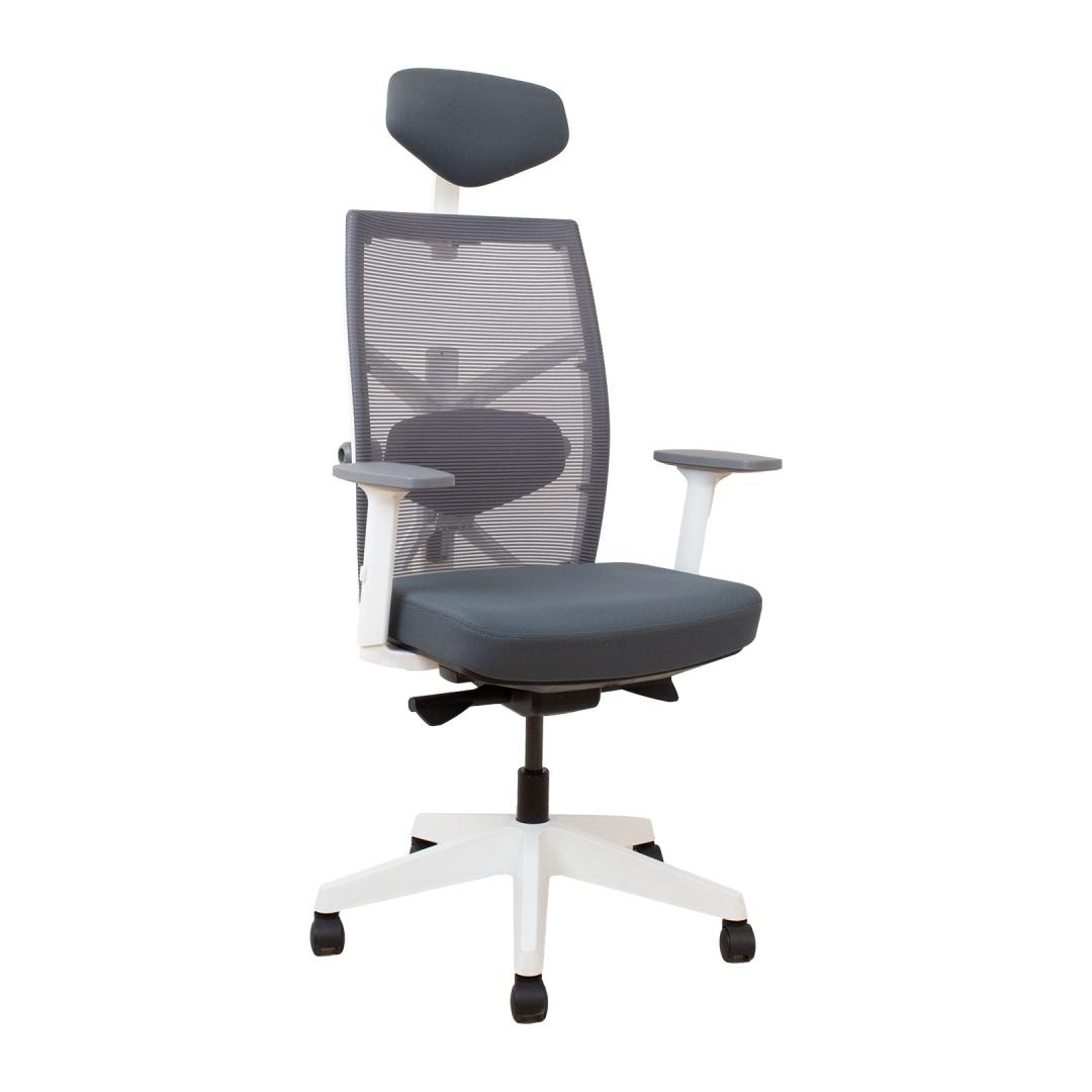 Task chair TUNE grey with white back frame. The seat is covered with polyester fabric, 50 000 Martindale's. The backrest is covered with polyester mesh fabric. White plastic outer shell. The chair has a tilt mechanism, automatic tilt tension control and tilt lock control. Pneumatic seat height adjustment. Back height adjustment 50-60,5cm. Adjustable lumbar support. Adjustable seat depth 44-48cm. The armrests are made of white and grey plastic. The depth and angle of the armrests is adjustable, the height is adjustable 20,5-30,5cm. Free tilting headrest 30°, adjustable height. 5-prong plastic base, D70cm. The chair has auto brake castors, 65mm. The overall dimensions of the chair are 70x70xH111-128cm. Chair height is 111-128cm, seat height 41,5-51,5cm, seat depth 44-48cm, seat width 49cm. Weight limit 120kg. Töötool TUNE hall, valge raamiga. Iste on kaetud polüesterkangaga, 50 000 Martindale’i. Seljatugi on kaetud polüestervõrkkangaga. Tooli plastikkorpus on valget värvi. Toolil on kiikemehhanism, lukustamine mitmes positsioonis ja automaatne kiike jäikuse reguleerimine. Seljatoe kõrgus on reguleeritav vahemikus 50-60,5cm, istme sügavus vahemikus 44-48cm. Istme kõrgus on reguleeritav gaasamordi abil. Reguleeritav nimmetugi. Plastikust käetoed on kolmes suunas reguleeritavad. Käetugede kõrgus on reguleeritav vahemikus 20,5-30,5cm. Käetugede toetuspinda saab lükata ette-taha ja muuta pöördenurka sisse-välja. Peatugi on vabalt kallutatav 30°, peatoe kõrgus reguleeritav. Toolil plastikust 5-haruline jalarist, D70cm. Toolil on põrandat säästvad piduritega rattad, 65mm. Tooli üldmõõdud on 70x70xH111-128cm. Tooli kõrgus on 111-128cm, istme kõrgus 41,5-51,5cm, istme sügavus 44-48cm, istme laius 49cm. Kaalupiirang 120kg.