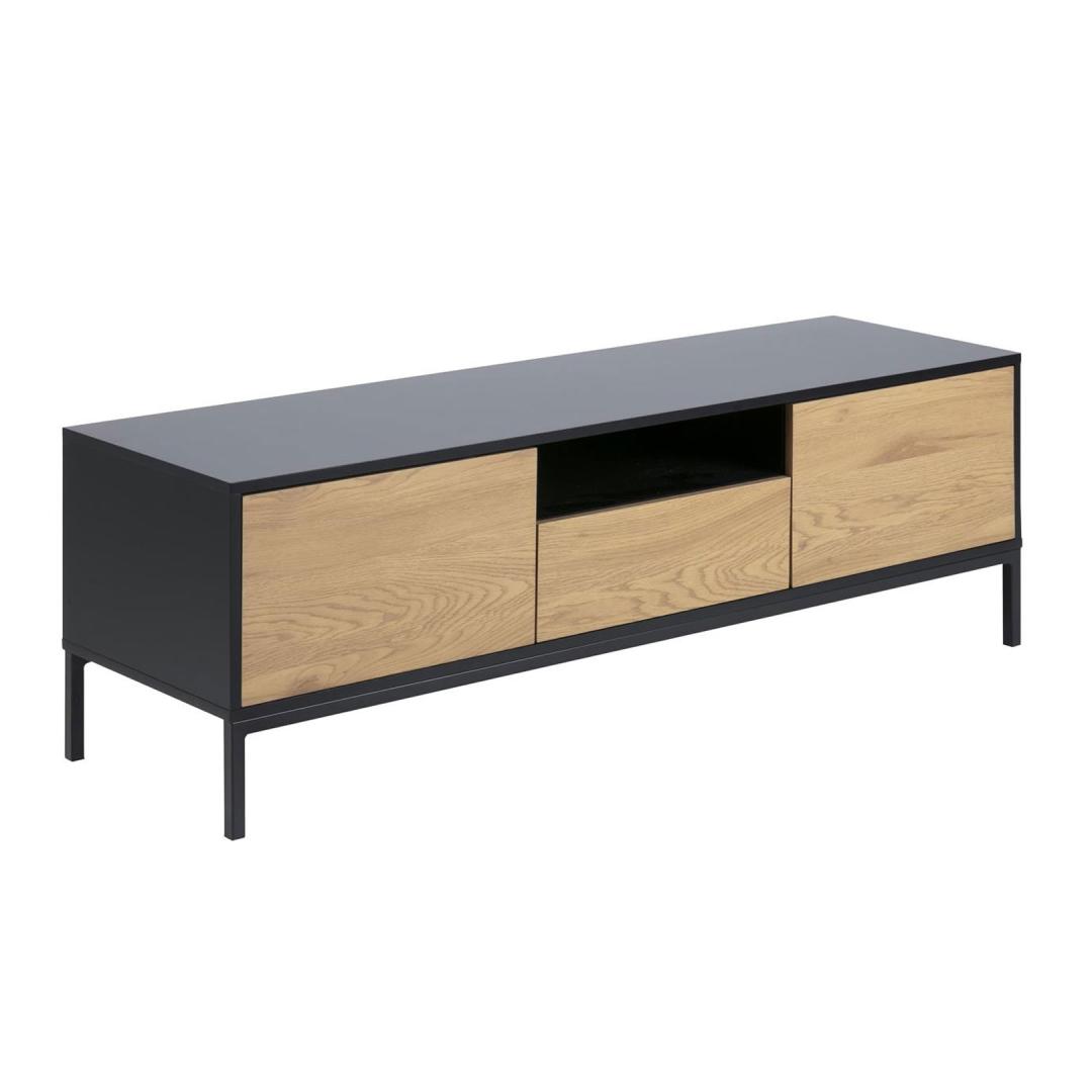 TV-laud SEAFORD 140x40xH45cm, raam: MDF, matt must, 2 ust: lamineeritud kattega mööbliplaat, värvus: tamm