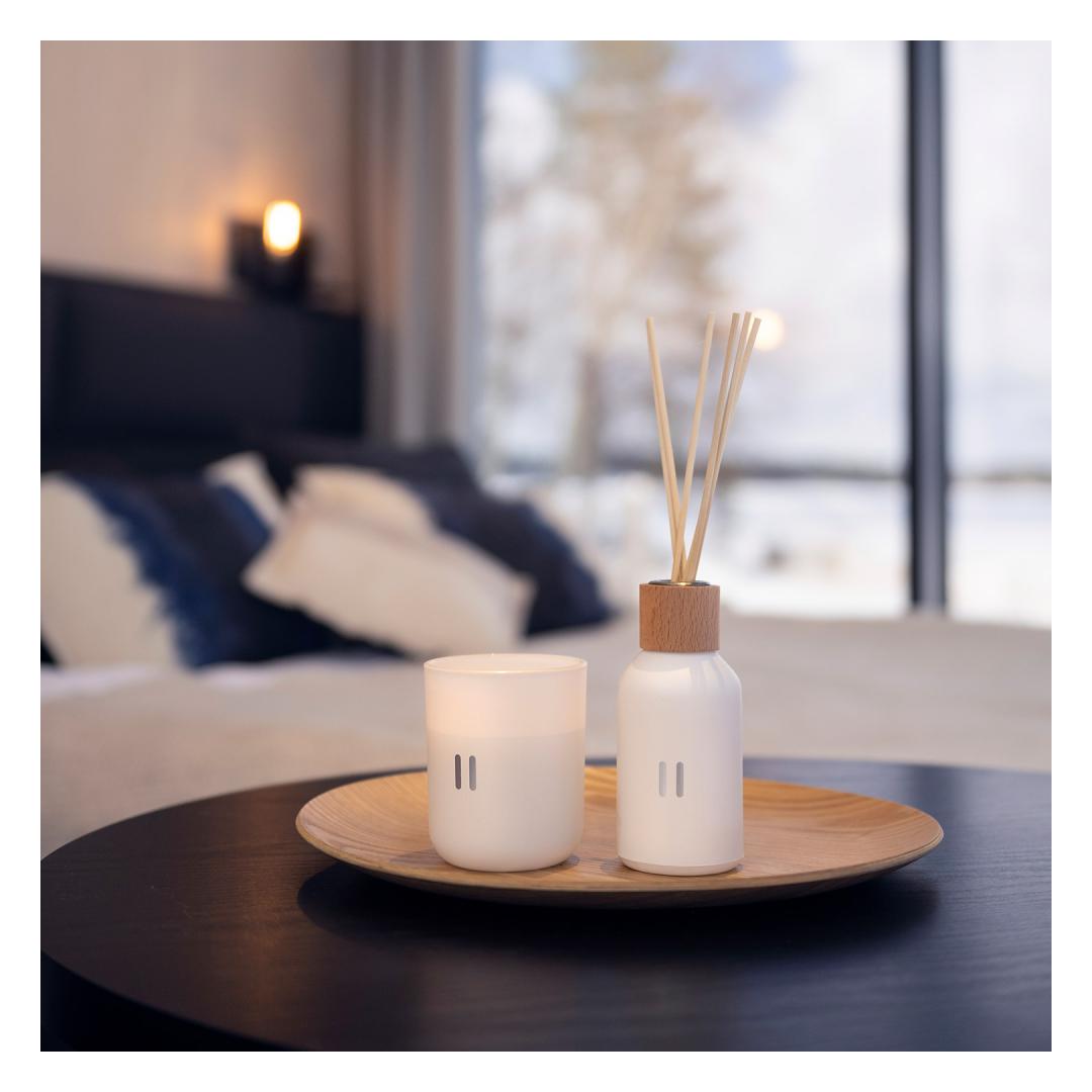 Stylish fragrance sticks scented with light fragrance of early summer greenness and birch leaves. Stiilne difuuser / õhuvärskendaja vabastab ruumi kerge lõhna, muutes selle interjööri osaks. Ruumilõhnastaja ergutav kaselõhn meenutab varasuvist rohelust koos värskete kaselehtedega. Lõhna intensiivsust saab reguleerida pulkade arvu järgi - mida rohkem pulgakesi, seda tugevam on aroom. Pakis 6 pilliroopulka, aroomivesi 100ml. Lõhn püsib umbes 4 nädalat. Pakend: 55 × 55 × 22 cm.