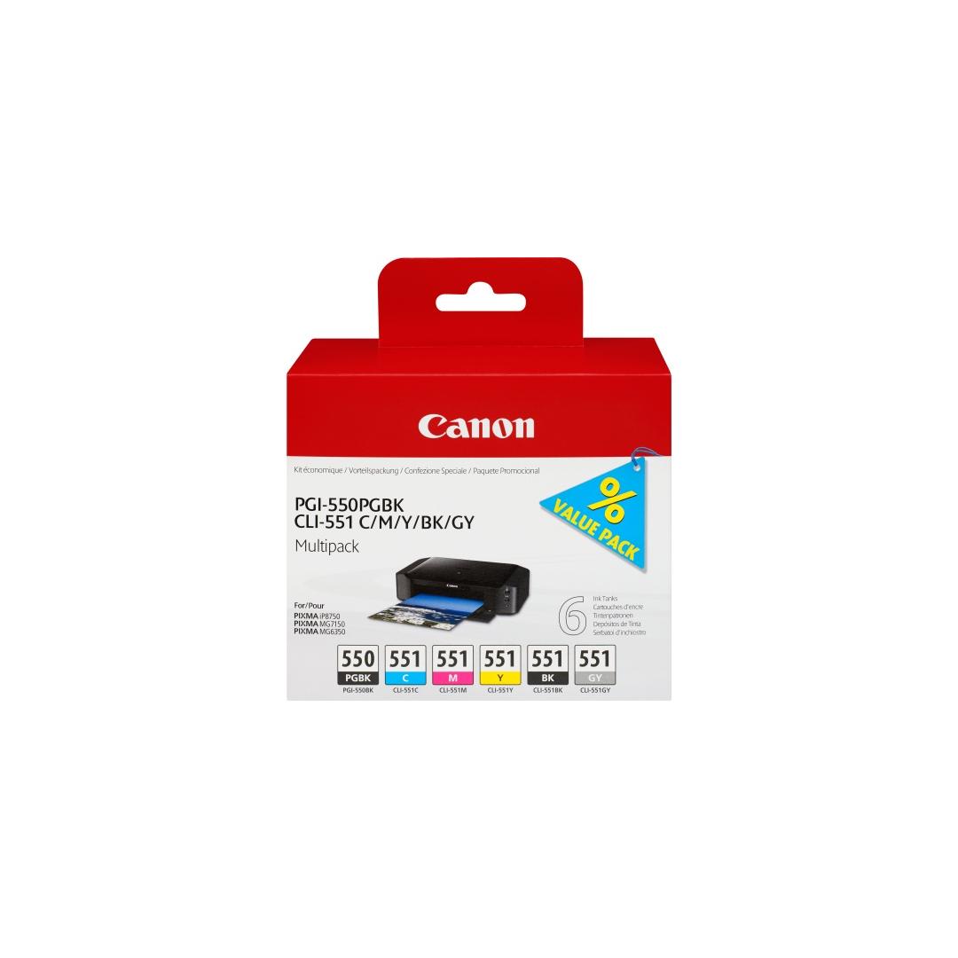 Canon PGI-550/CLI-551 (6496B005) Ink Cartridge Multipack, PGBK/C/M/Y/BK/GY
