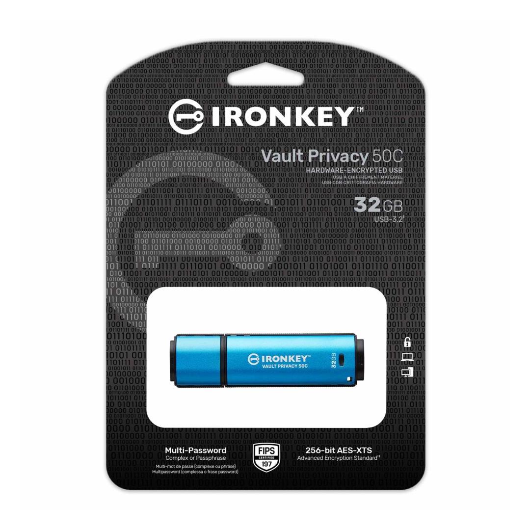 Kingston IronKey™ Vault Privacy 50 series are premium USB drives that provide business-grade security with FIPS 197 certified AES 256-bit hardware-encryption in XTS mode, including safeguards against BadUSB with digitally-signed firmware and against Brute Force password attacks. VP50 series is also TAA compliant. Because it is encrypted storage under the user’s physical control, VP50 series are superior to using the internet and Cloud services to safeguard data.
