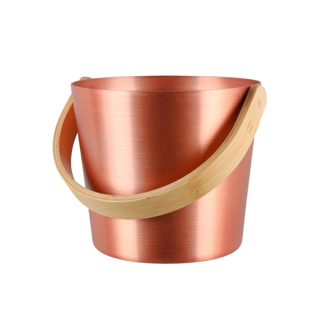 Rento Sauna bucket aluminium copper, bamboo handle. Height 35 cm, diameter 23 cm, 5L. Saunaämber RENTO COPPER, 5L, D23xH35 cm, alumiinium: vask, bambusest käepide