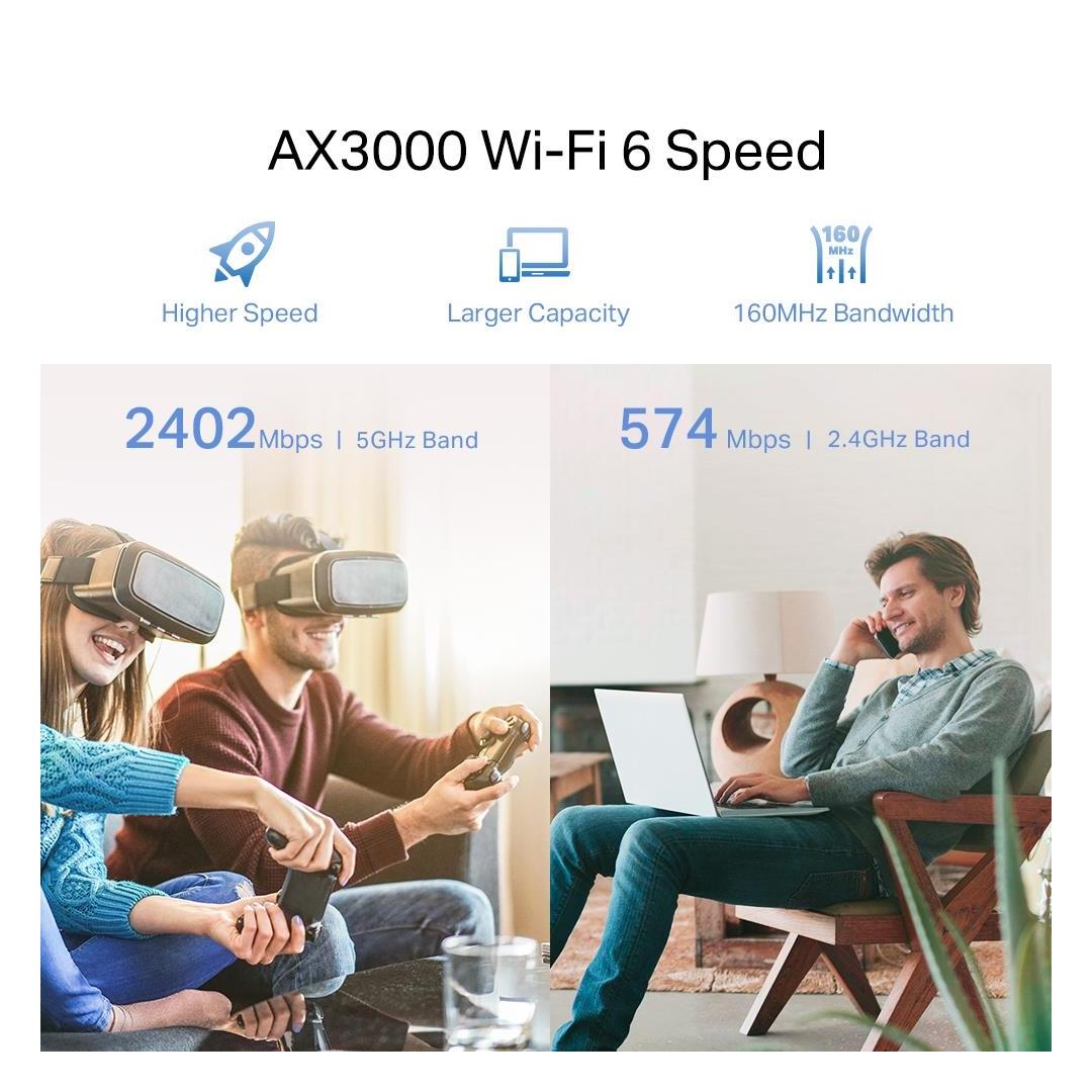Dual Band WiFi 6 - Separate 5 GHz (2402 Mbps) and 2.4 GHz (574 Mbps) WiFi bands for faster speeds and greater capacity with the latest technology
