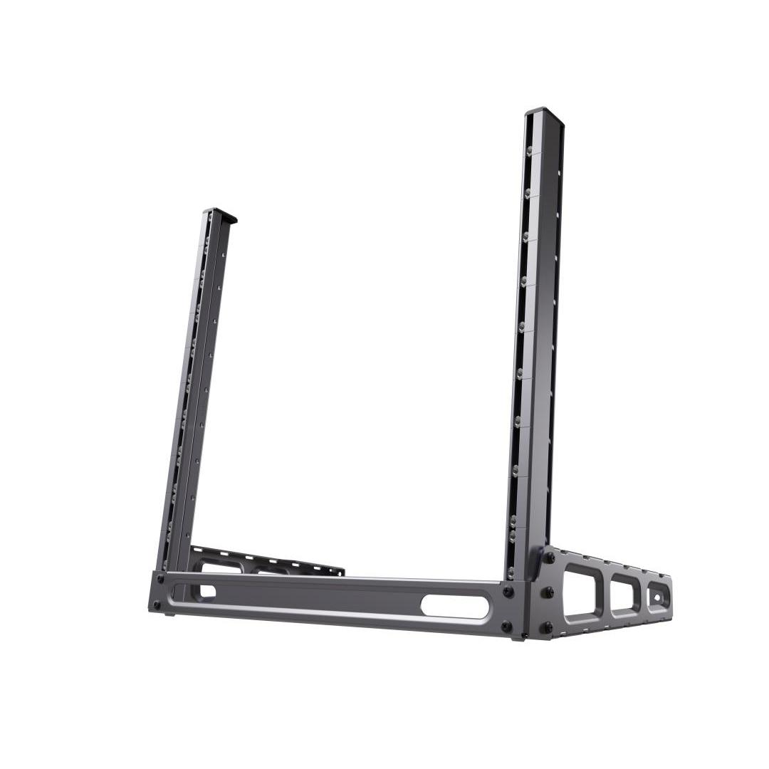 A 19” 10U desktop rack with adjustable angle and additional space for cable management.