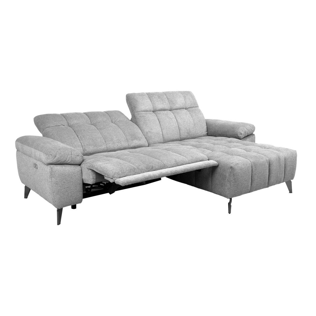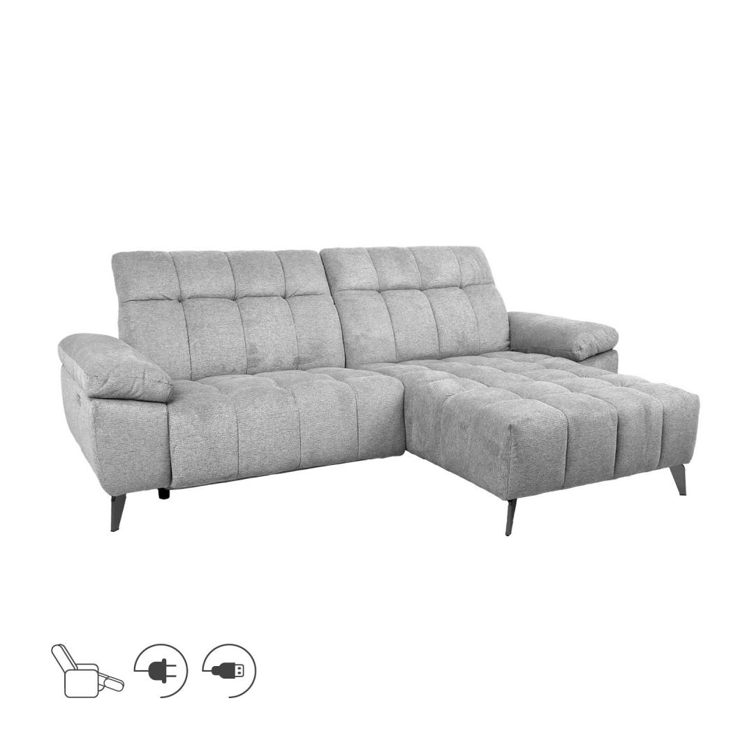 Corner sofa LUZERN right corner, electric recliner, light grey.