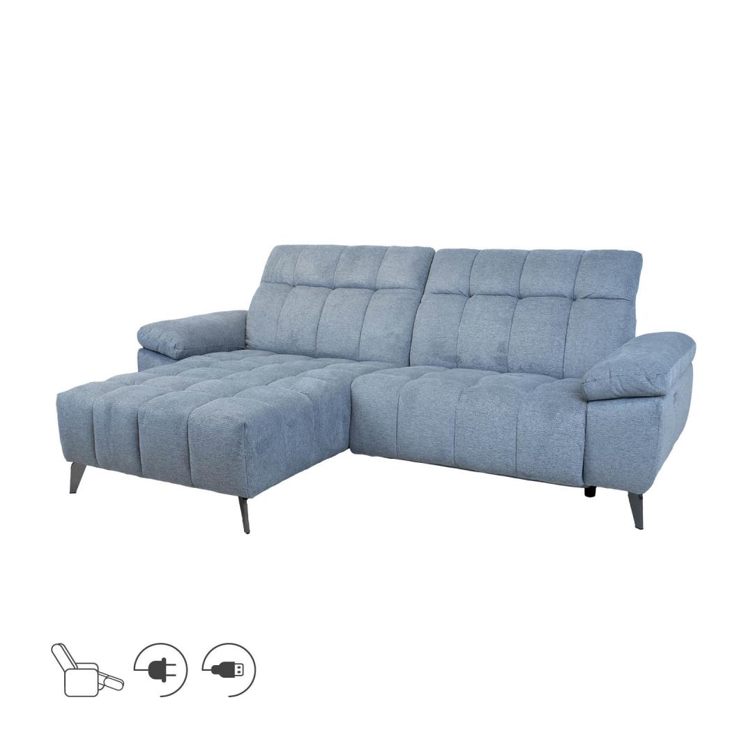 Corner sofa LUZERN left corner, electric recliner, bluish grey.
