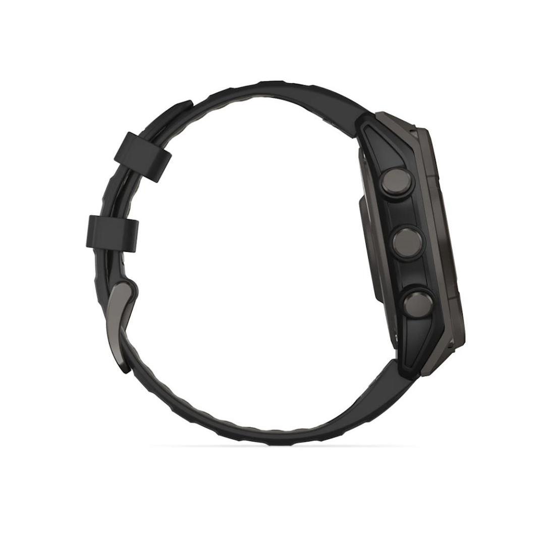 Sapphire, Carbon grey DLC titanium with Black/pebble grey silicone band