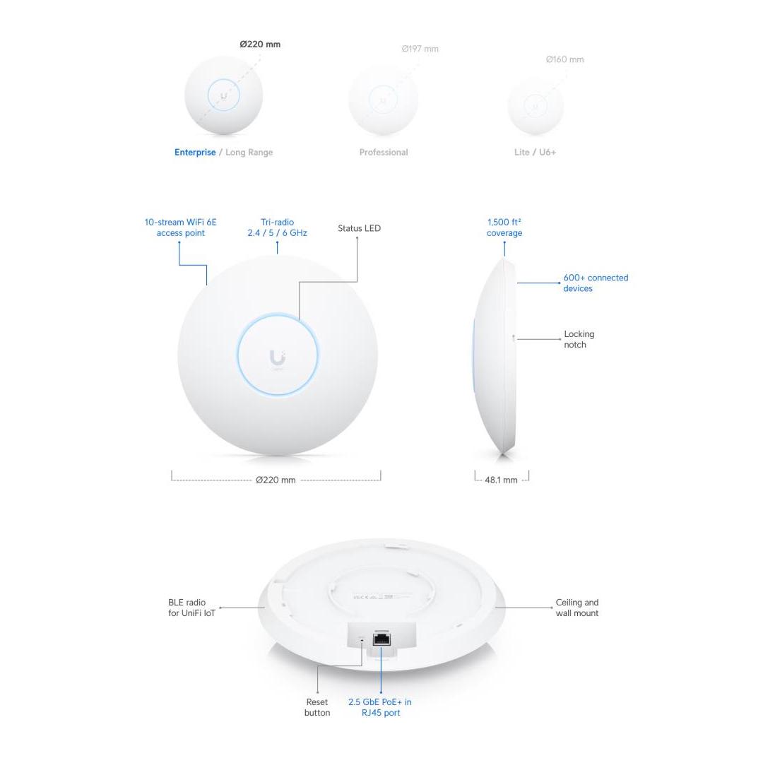 Compact, ceiling-mounted WiFi 6 AP with 4 spatial streams that improves upon the U6 Lite with higher performance and dual-band WiFi 6 support. Ideal for small and medium-sized businesses.