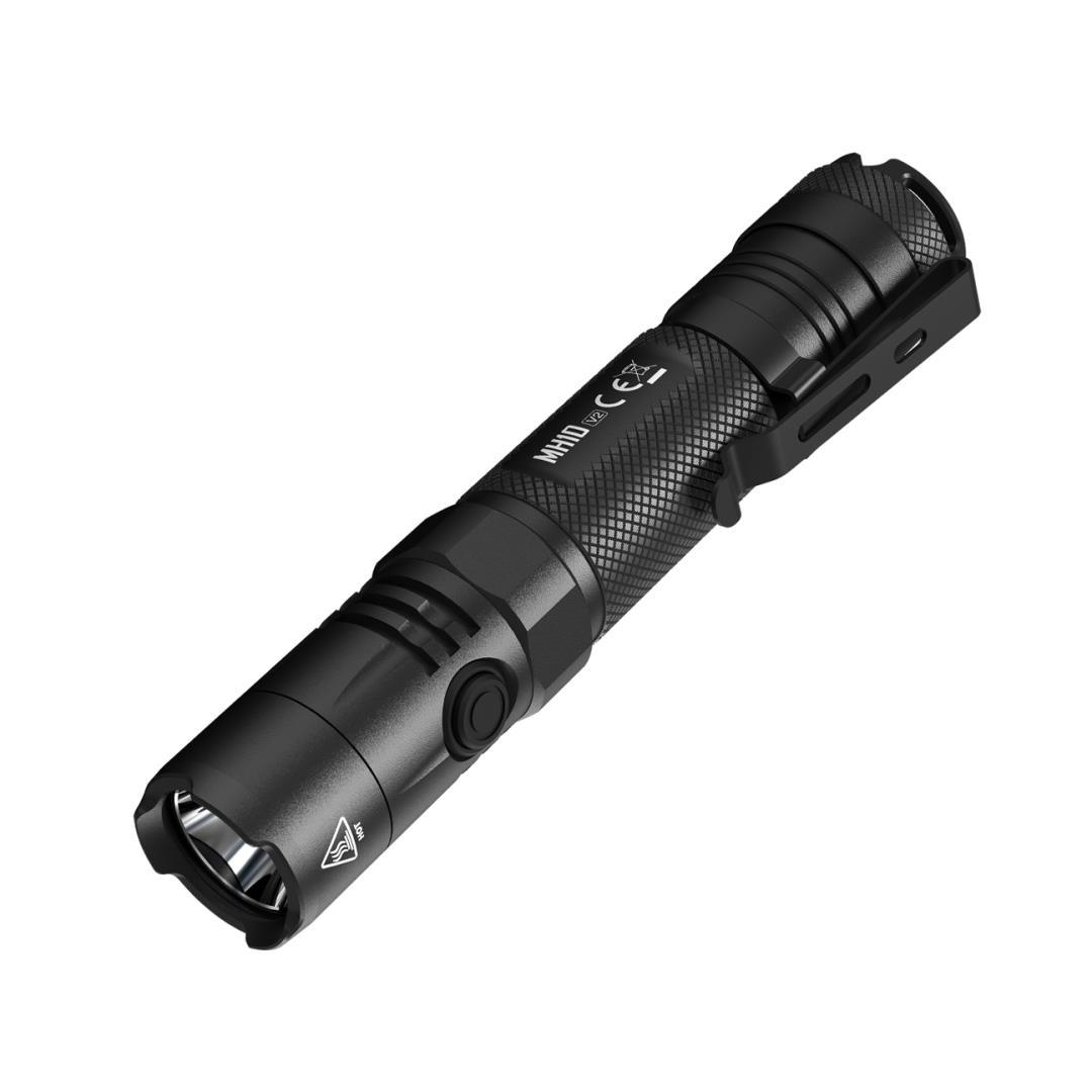 Triple the runtime and 20% brighter, yet still compact with more carry options, the Nitecore MH10 v2 is the quintessential upgrade of the classic rechargeable flashlight MH10. The 1200 lumen output at 220 yards of throw is a culmination of years of engineering and design. It also comes with four adjustable brightness levels as well as strobe, beacon, and SOS for emergencies and personal safety situations. MH10 v2 is a dependable workhorse with included 4000mAh 21700 battery and a USB-C fast charging port. Counting on its 3 hours and 45 minutes of runtime even in turbo to accomplish all of your tasks with time to spare. The MH10 v2 runs up to 62 days on low mode, making it a fantastic emergency light. At just over six inches in overall length, it remains a solid choice as a duty light or EDC flashlight with the included durable hard holster, pocket clip and lanyard. The MH10 v2 can handle whatever you throw at it with its premium quality: HA III aluminium construction, IPX8 waterproof rating, mode memory, and advanced temperature regulation. No matter whether you use it for daily tasks, or on patrol duty or search rescue missions, MH10 v2 is an indispensable companion day in and day out.