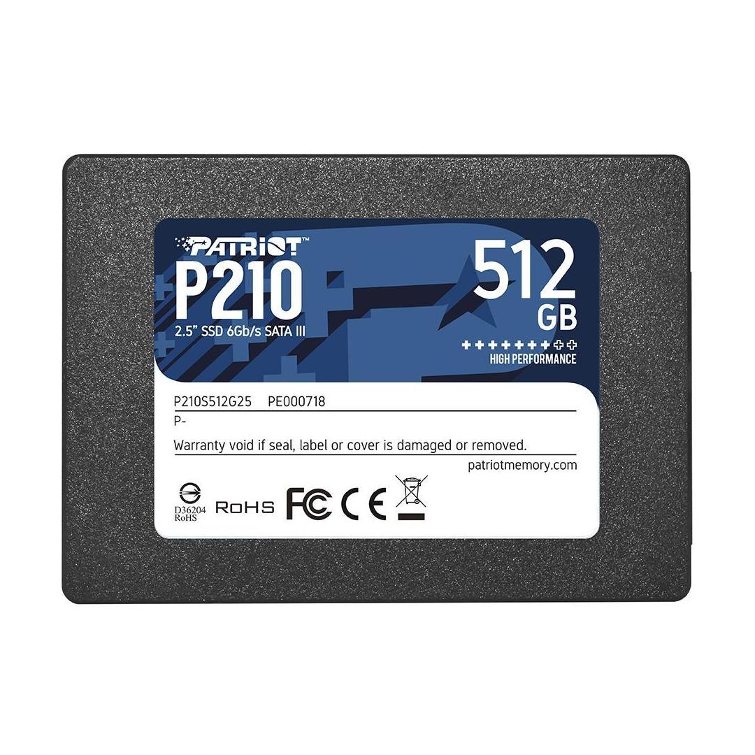 SSD PATRIOT P210 512GB SATA 3.0 Write speed 430 MBytes/sec Read speed 520 MBytes/sec 2,5" TBW 240...