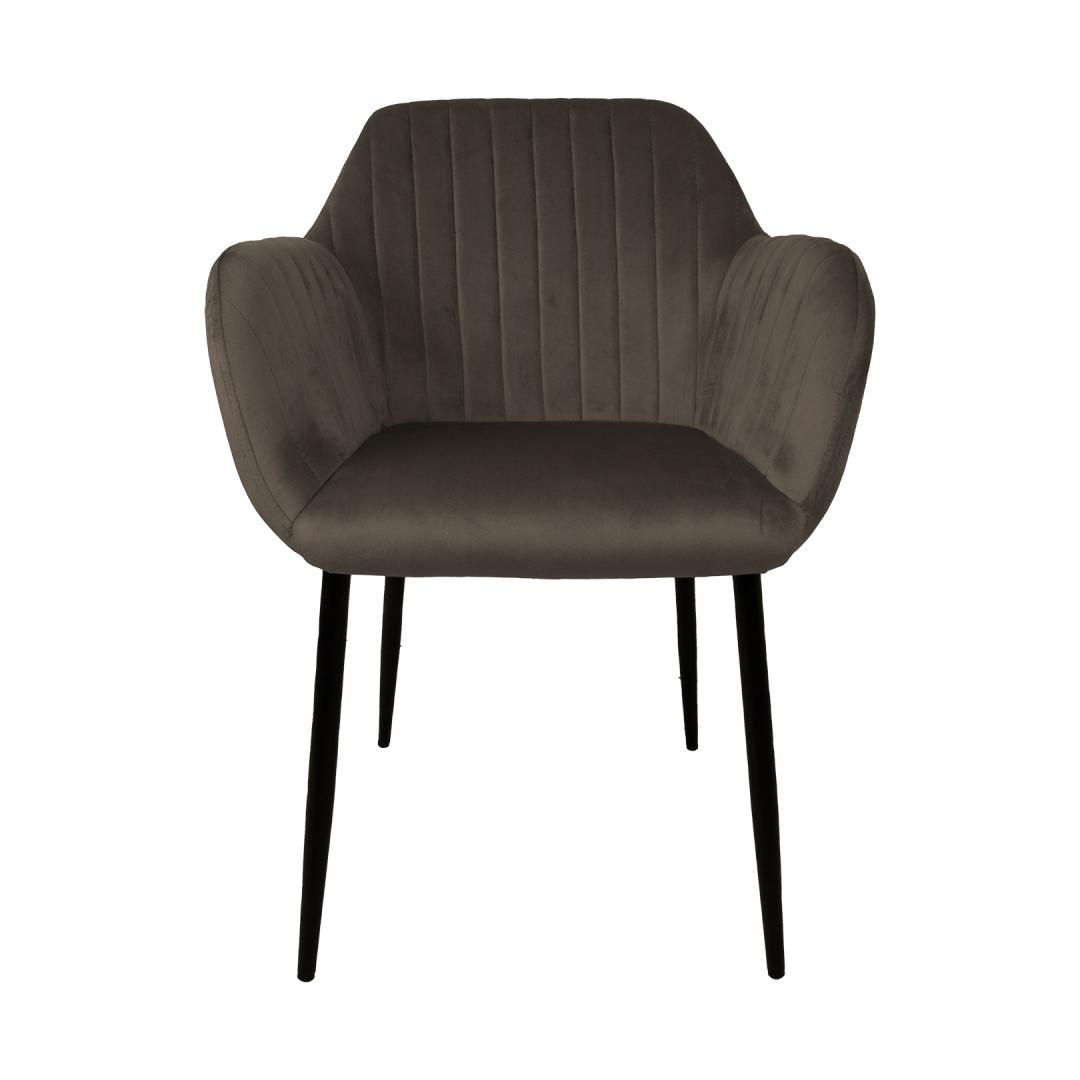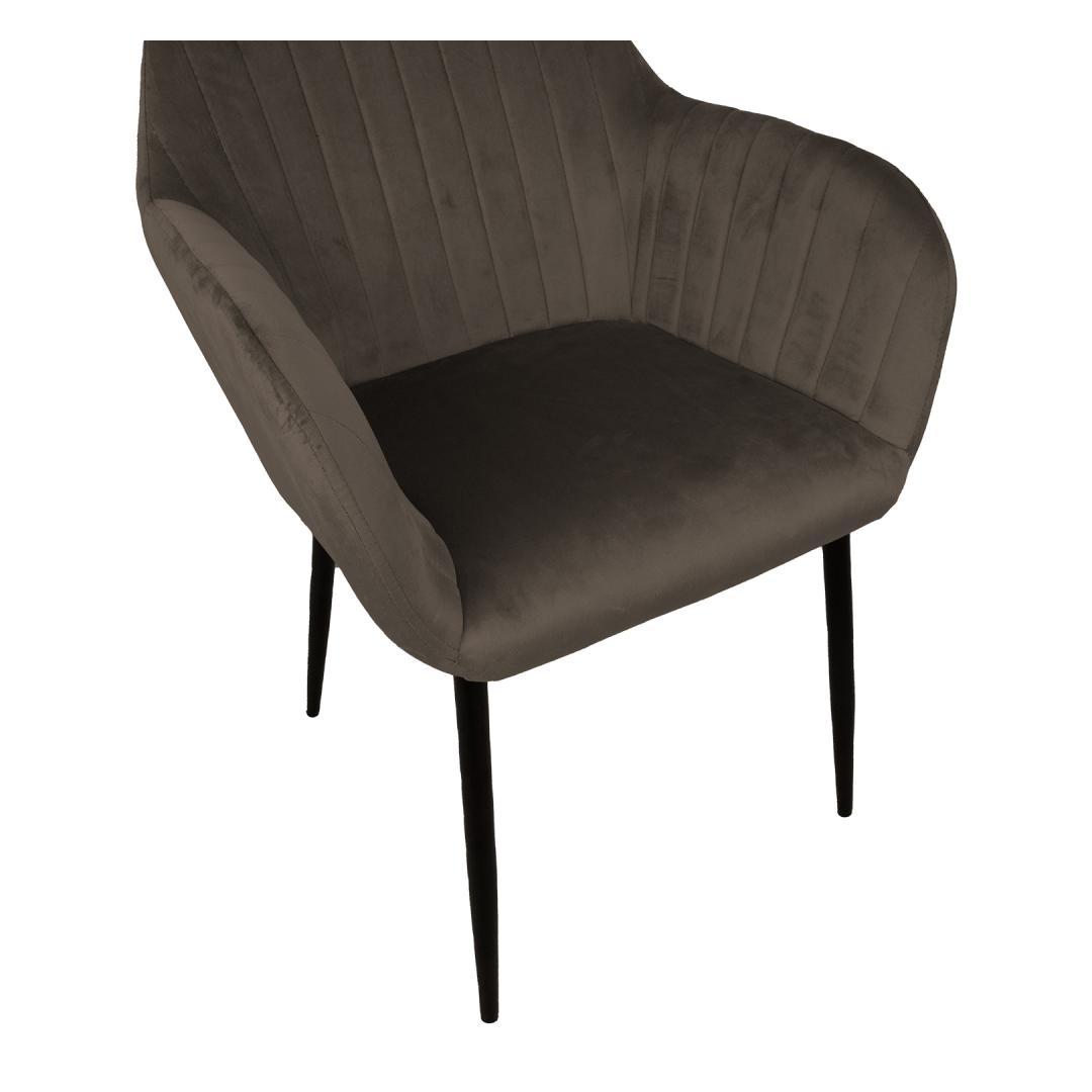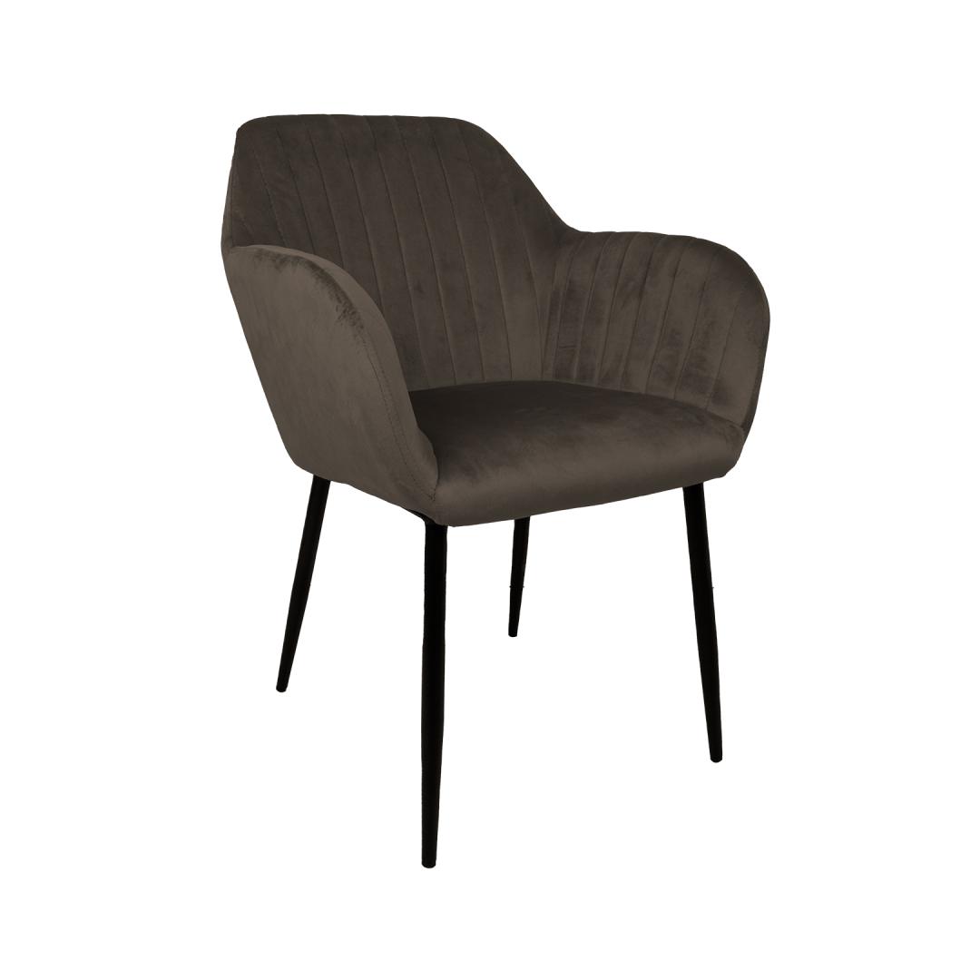 Tool EVELIN pruunikashall. Mugava vormiga iste on kergelt polsterdatud ja kaetud pruunikashalli sametkangaga. Kattematerjal: 100% polüester. Istme karkass: metall ja vineer. Polsterdus: polüuretaanvaht. Metallist jalad on kaetud musta pulbervärviga. Tooli üldmõõdud on 58x59xH81cm. Istme laius 37cm, istme sügavus 39cm, istme kõrgus 46cm. Käetoe kõrgus maast 65cm. Kaalupiirang 120kg.