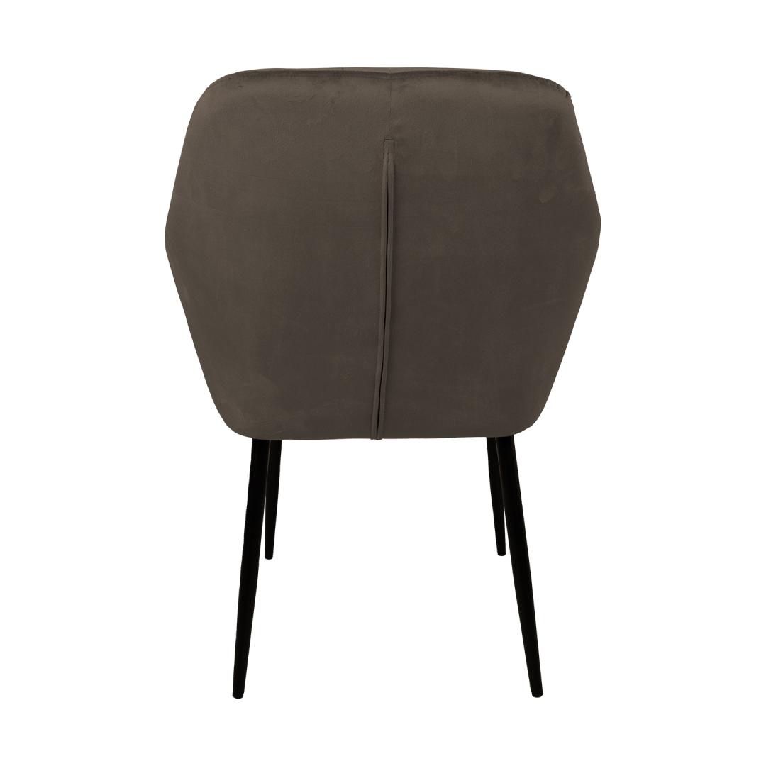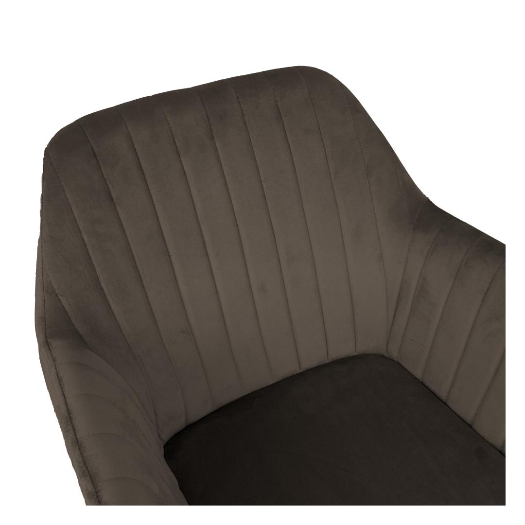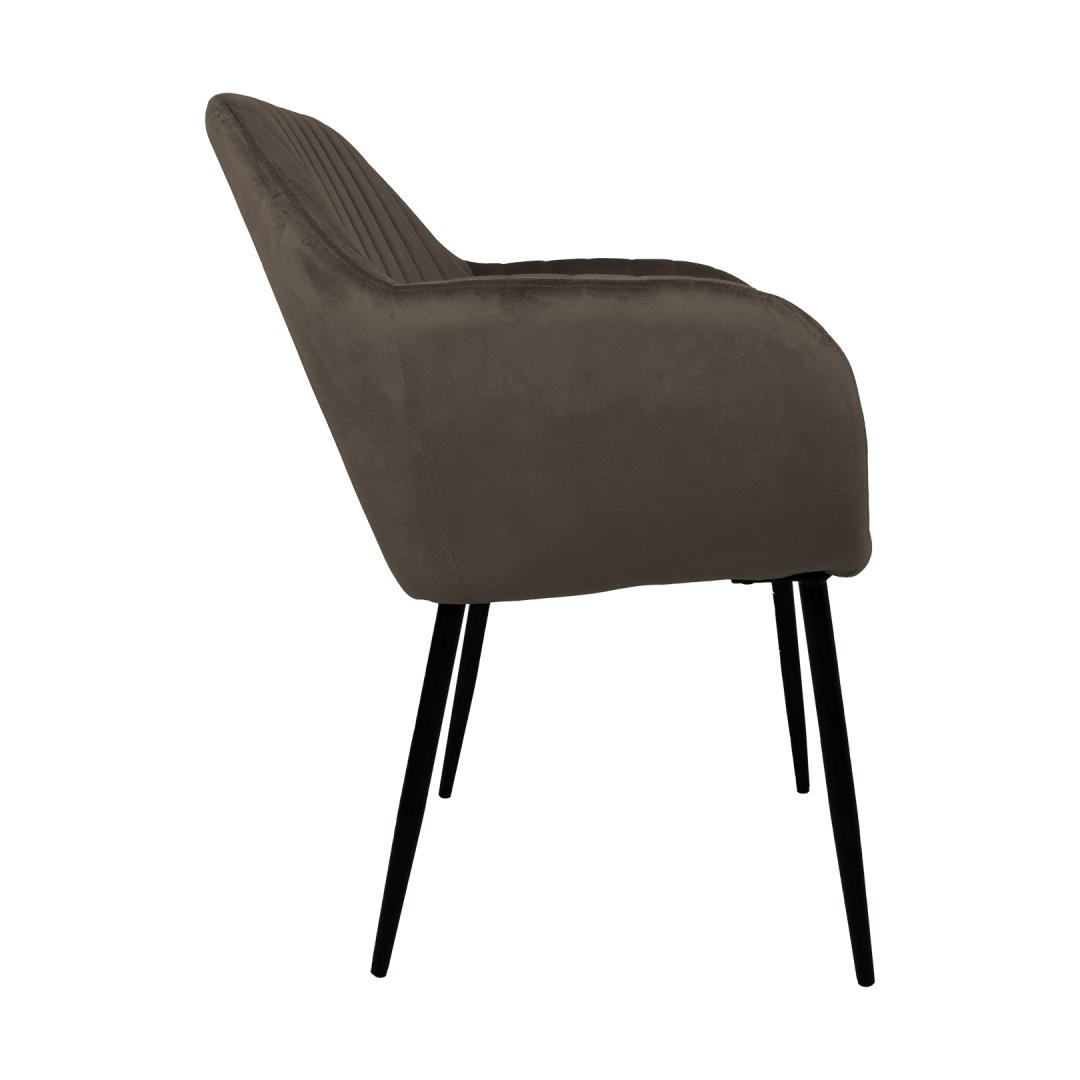 Tool EVELIN pruunikashall. Mugava vormiga iste on kergelt polsterdatud ja kaetud pruunikashalli sametkangaga. Kattematerjal: 100% polüester. Istme karkass: metall ja vineer. Polsterdus: polüuretaanvaht. Metallist jalad on kaetud musta pulbervärviga. Tooli üldmõõdud on 58x59xH81cm. Istme laius 37cm, istme sügavus 39cm, istme kõrgus 46cm. Käetoe kõrgus maast 65cm. Kaalupiirang 120kg.