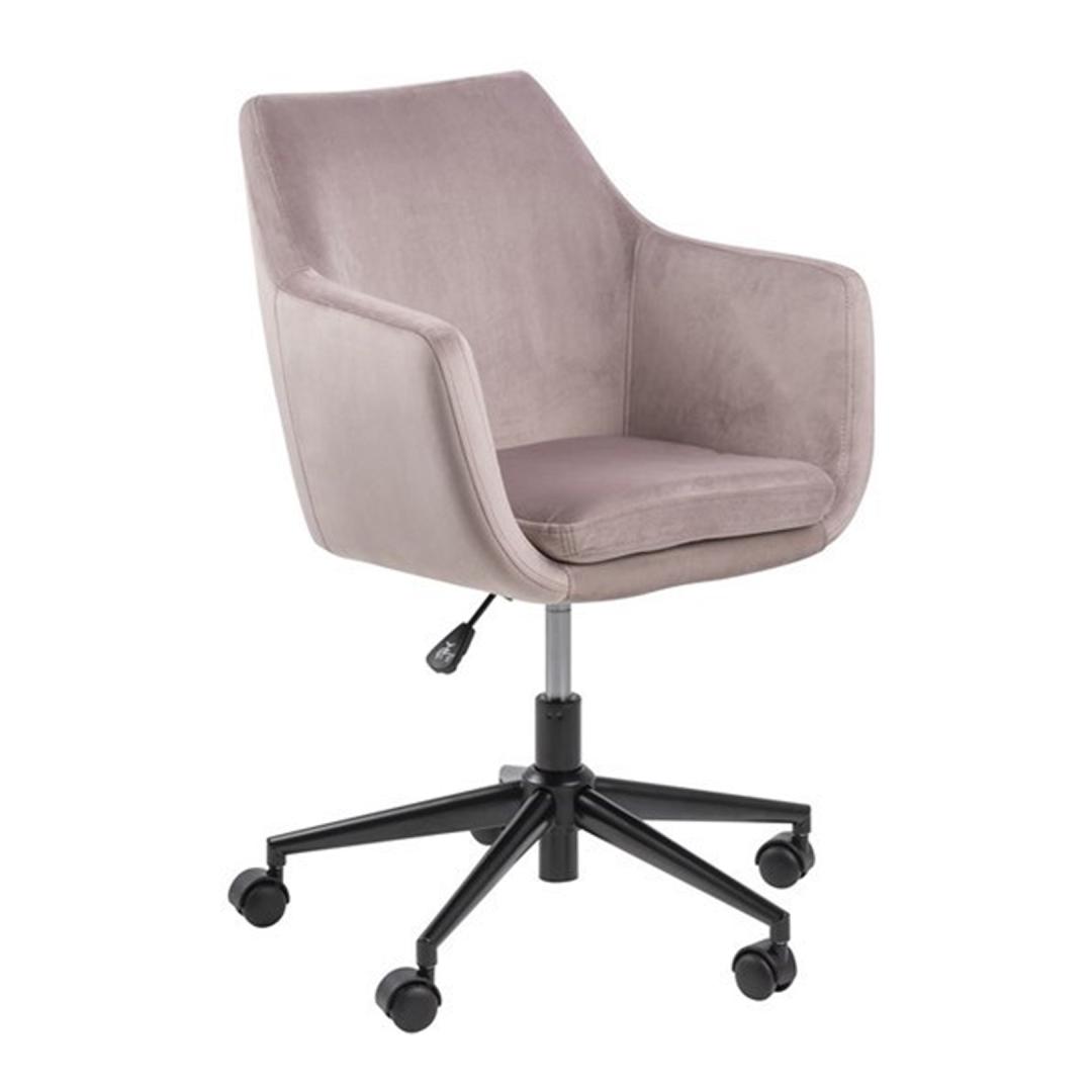 Töötool NORA vanaroosa. Ideaalne tool kodukontorisse. Klassikalise siluetiga tool mõjub kaasaegsena. Mugav polsterdatud iste ja käetugi muudavad selle ideaalseks kodus töötades. Töötoolil on reguleeritava kõrgusega iste ja pöördefunktsioon. Kaunis sametkangas on iseloomuliku pehme tunnetusega ja annab toolile sügavuse. Iste ja seljatugi on kaetud vanaroosa sametkangaga. Jalarist on musta värvi metallist. Toolil on plastikrattad. Istumiskõrgus 44-54cm. Toote mõõdud on 58x58xH91cm. HOOLDUS: Hooldus piirdub tolmuimejaga ja plekieemaldamisega. Plekkide eemaldamisel tuleb olla ettevaatlik. Katsetage plekieemaldajaid esmalt vähem nähtaval alal ja tegutsege vastavalt tulemusele. Ärge kunagi kasutage lahusteid. Ärge asetage mööblit otsese päikesevalguse kätte. Aluse jaoks kasutage igapäevaseks puhastamiseks seebiveest kuivaks väänatud lappi. Rooste vältimiseks pühkige pind lapiga kuivaks. Ärge hõõruge pinda kõvade esemetega.