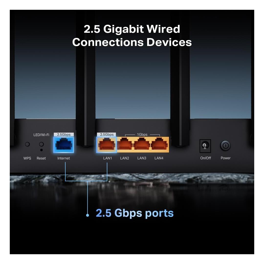 2.5G Wired Connection: 1× 2.5 Gbps WAN port, 1× 2.5 Gbps LAN port and 3× 1 Gbps LAN ports offer high-speed data transmissions.