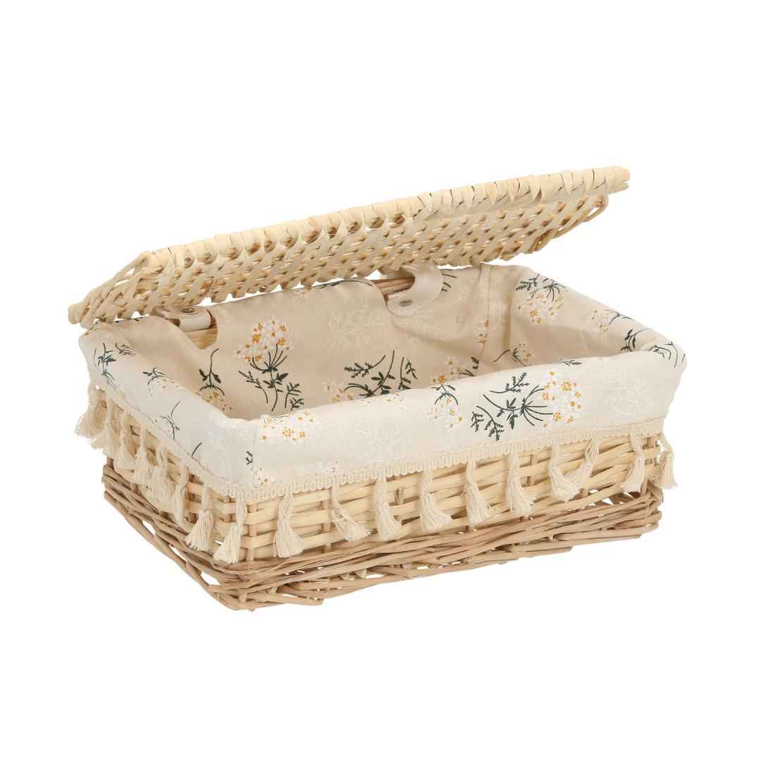 Textile lining: cotton floral fabric. Korvi materjal: käsitsi punutud naturaalne pajuvits.