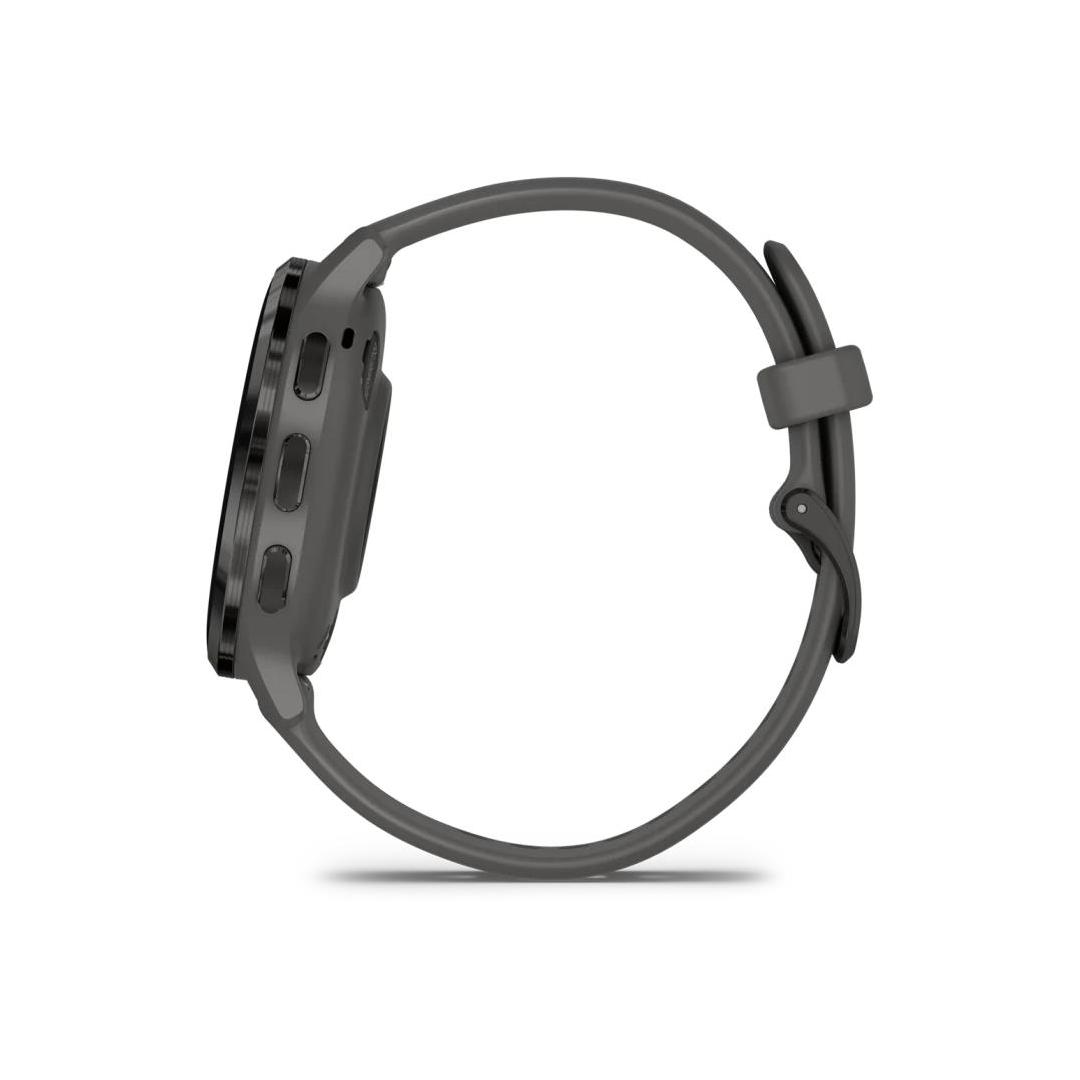 Slate stainless steel bezel with pebble grey case and silicone band