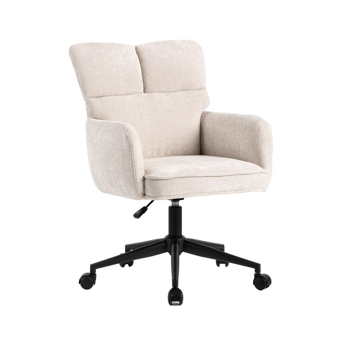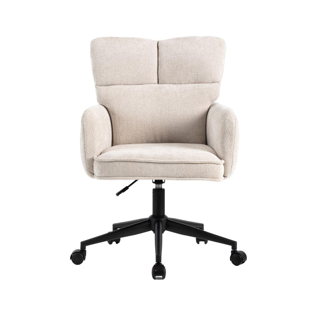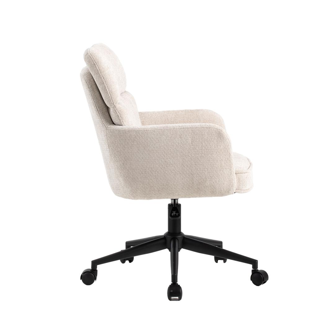 The seat and armrests of the chair are upholstered and covered with polyester fabric.