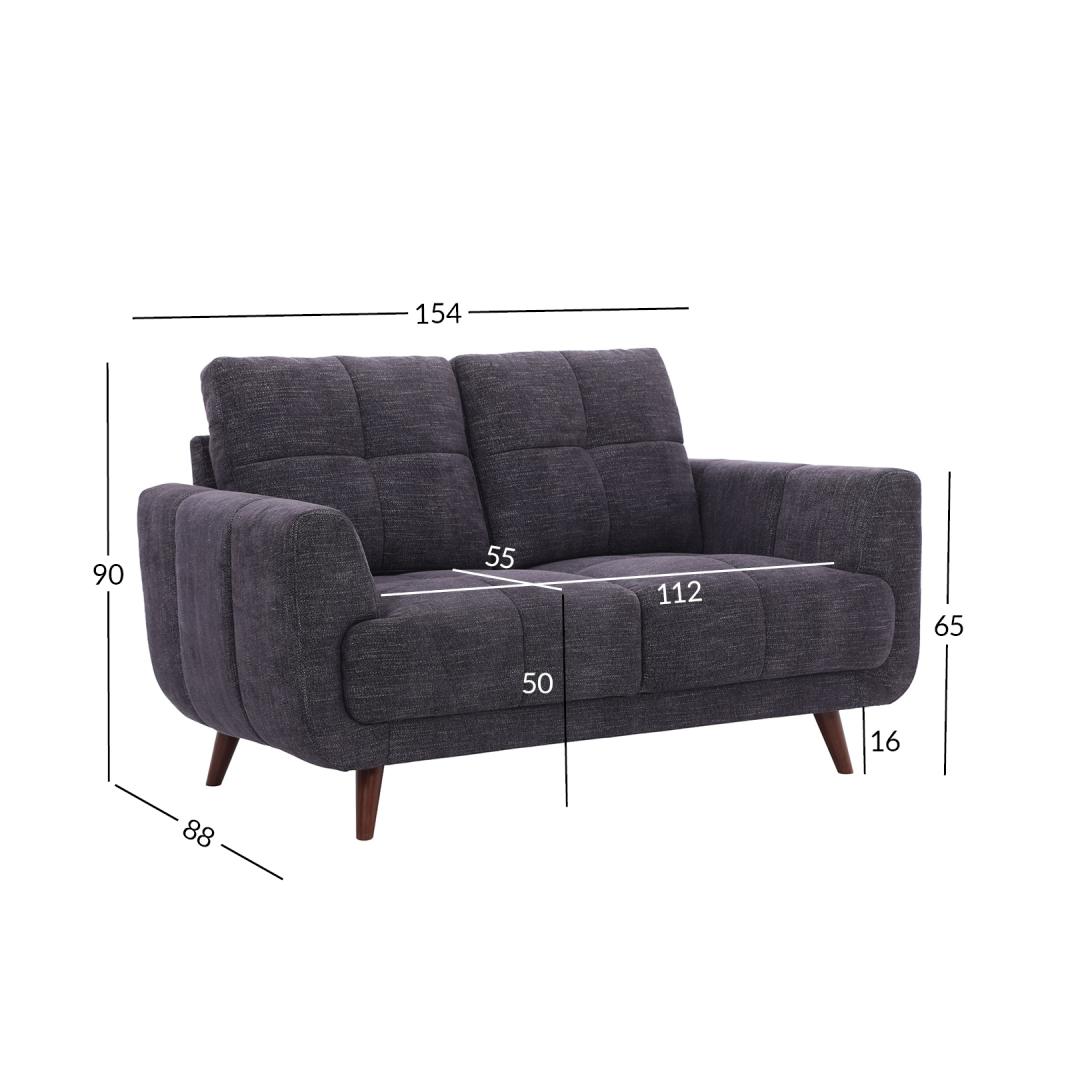 The overall dimensions of the sofa are 154x88xH90cm. Seat width 112cm, seat depth 55cm, seat height 50cm. Armrest height from the ground 65cm.