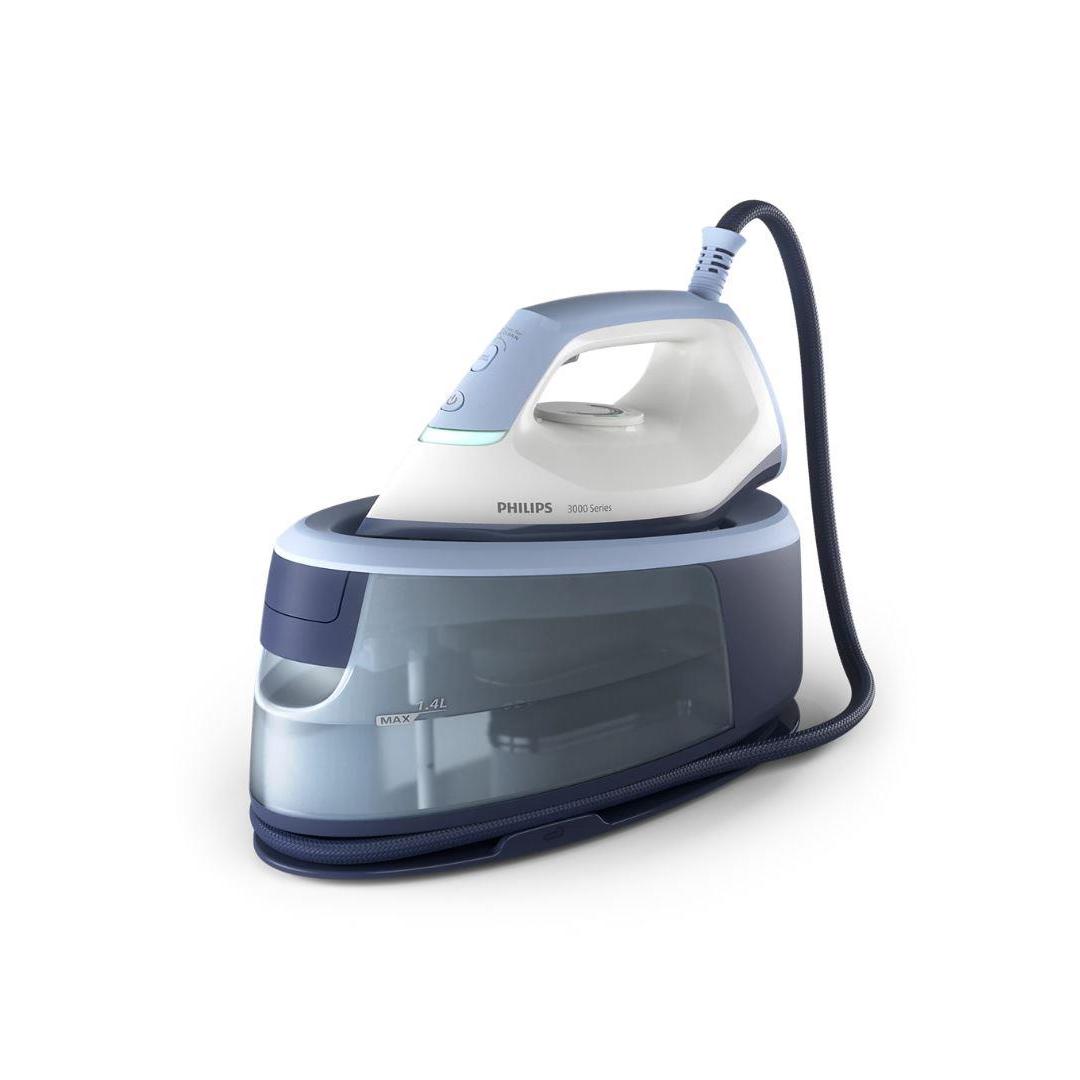 Philips 3000 series PSG3000/20 Steam generator. Iron power: 2400 W, Steam boost performance: 350 g/min, Soleplate type: Ceramic soleplate. Cord length: 1.6 m, Hose length: 1.6 m. Width: 192 mm, Depth: 355 mm, Height: 275 mm. Warranty period: 2 year(s). Package width: 230 mm, Package depth: 395 mm, Package height: 308 mm