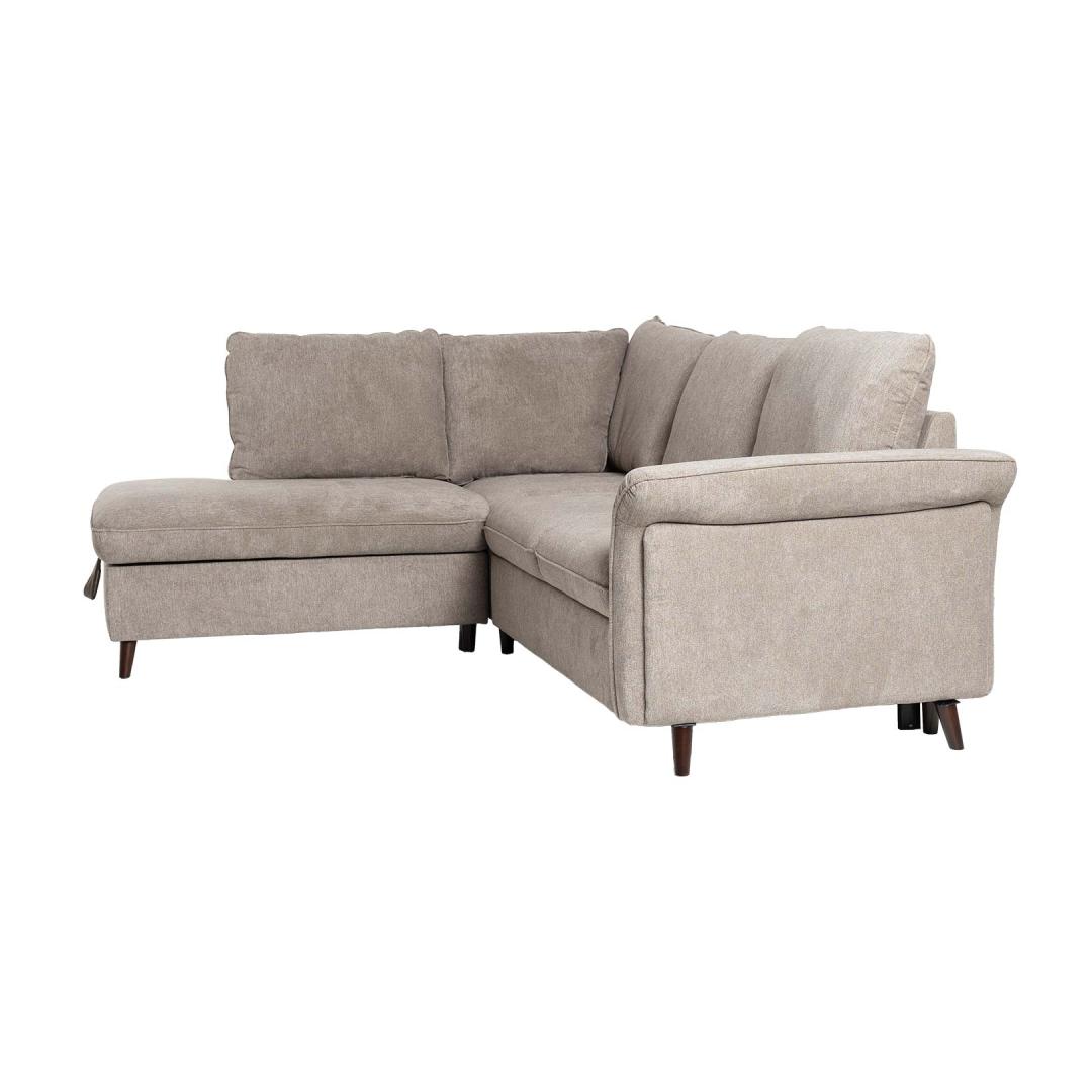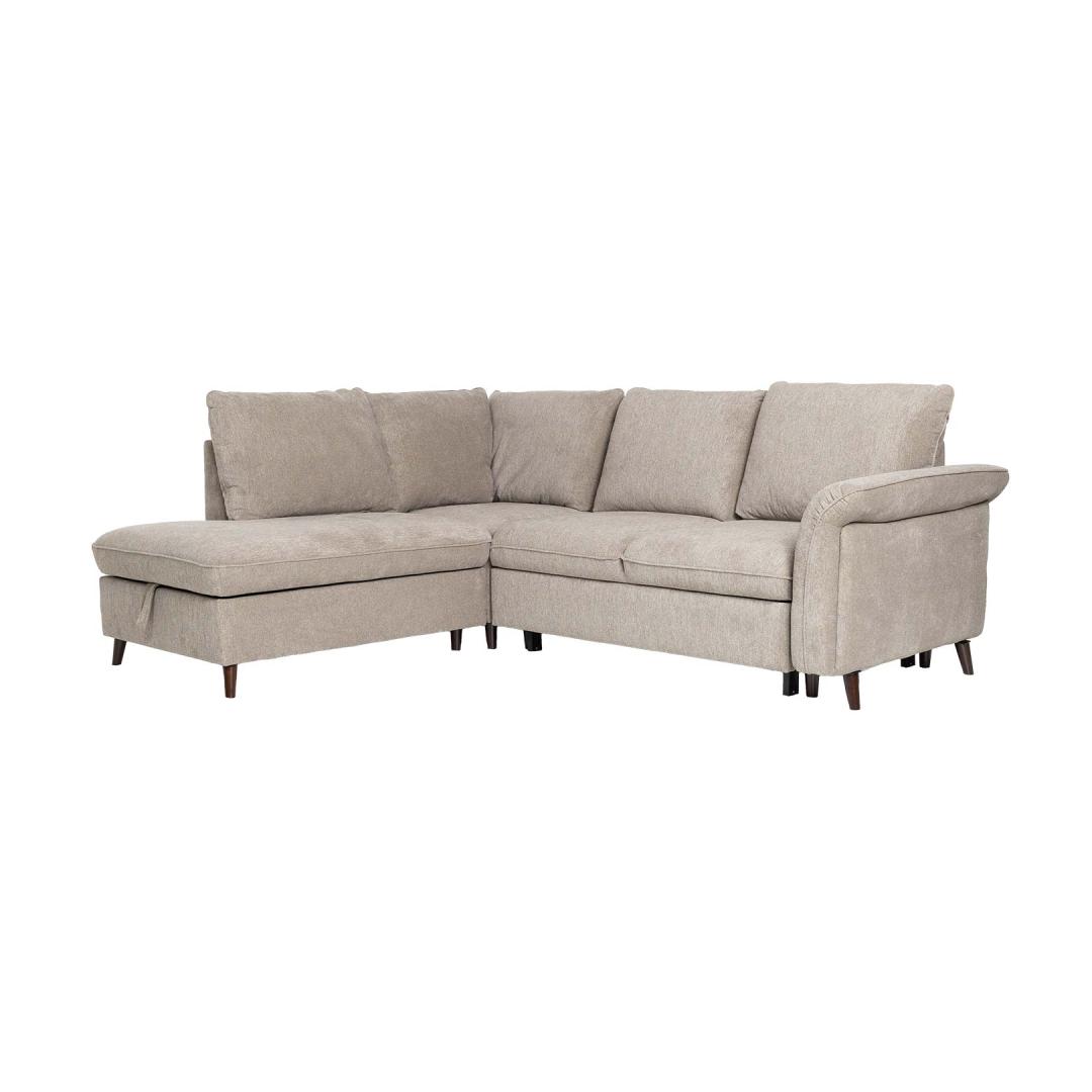 Corner sofa bed LINDY with storage space, left corner, light brown.
