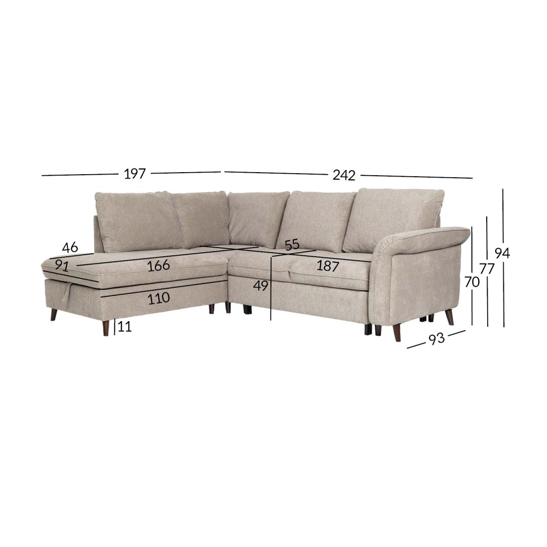 The sofa has dark plastic legs H11cm. Nurgadiivanvoodi LINDY panipaigaga, vasak nurk, helepruun.