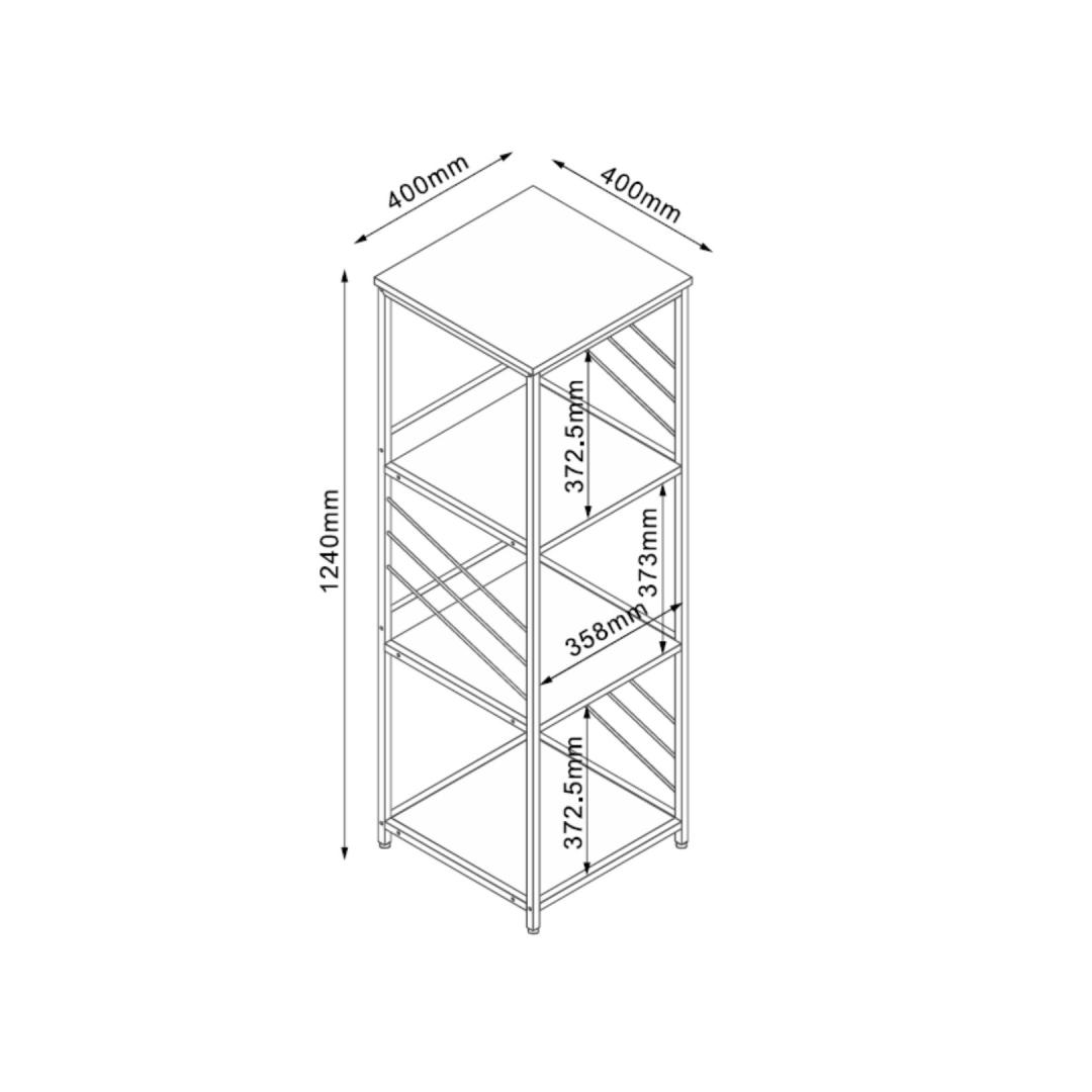 The shelf frame is made of metal and finished with black powder coating. Riiul DIMITRA 40x40xH124cm, rustik/must.