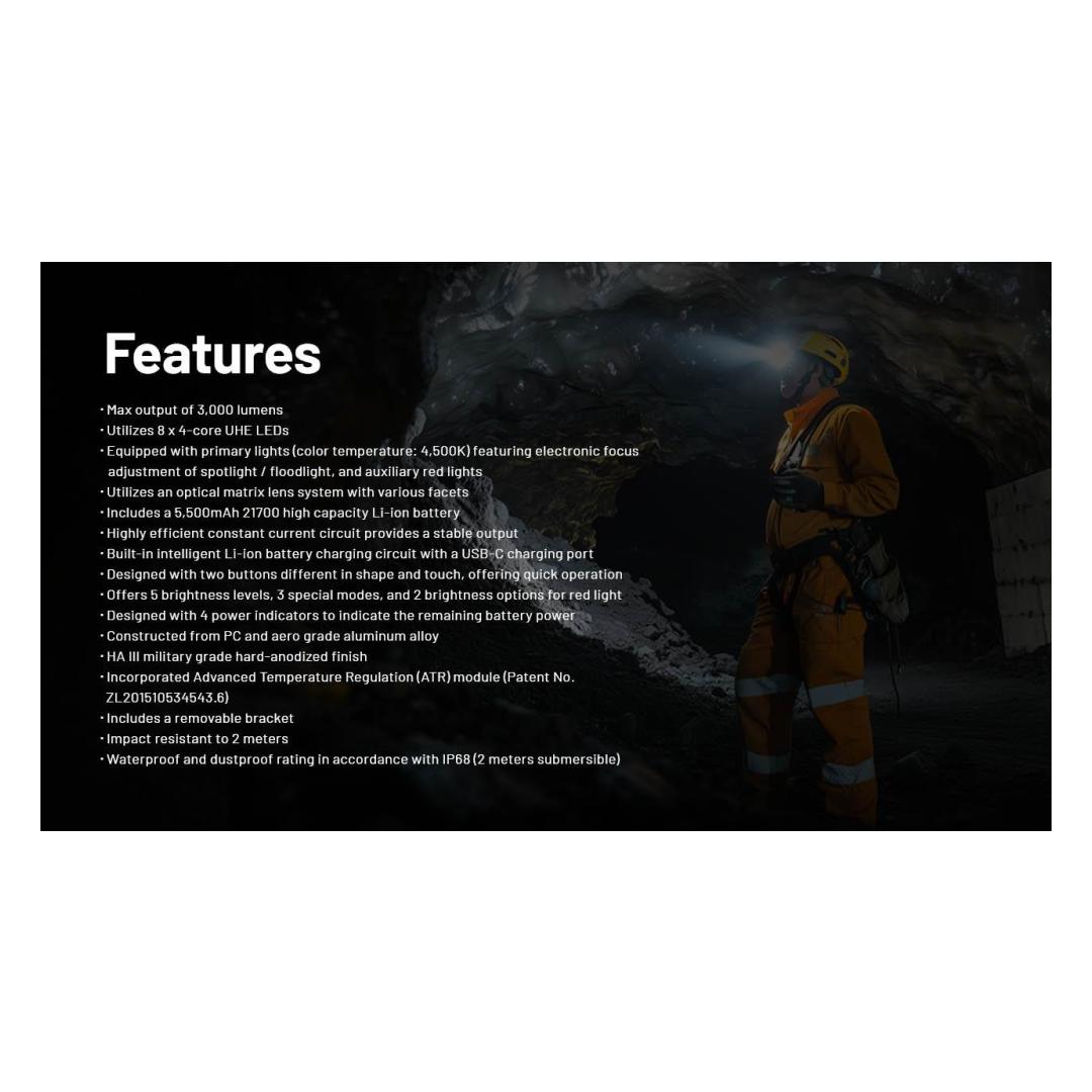 Equipped with 8 quad-core UHE LEDs arranged in a matrix, the HC75 UHE delivers a blazing 3000-lumen output and a 192-meter long throw. Its 4,500K neutral white primary light supports both stepless and quick adjustment of spotlight and floodlight, adapting to personal and quick lighting needs. The included replaceable 5,500mAh high-capacity Li-ion battery ensures worry-free runtime for work.