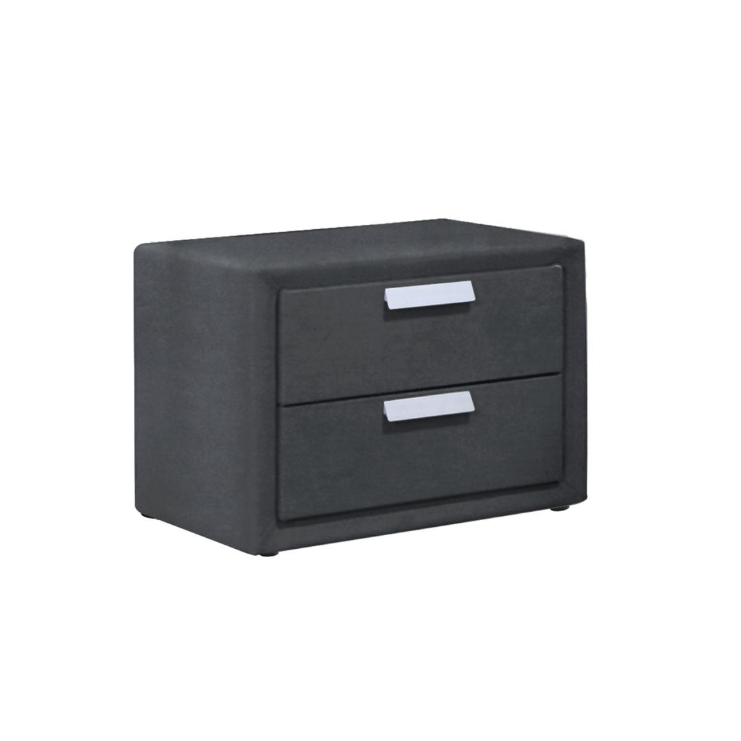 Nightstand GRACE dark gray. A nightstand is a practical and stylish furnishing element in the bedroom. The extra surface next to the bed allows you to conveniently store books or a phone there. The body of the nightstand is made of MDF board and covered with velvet fabric. The nightstand has two drawers, metal handles. The dimensions of the product are 50.5x41xH40cm.