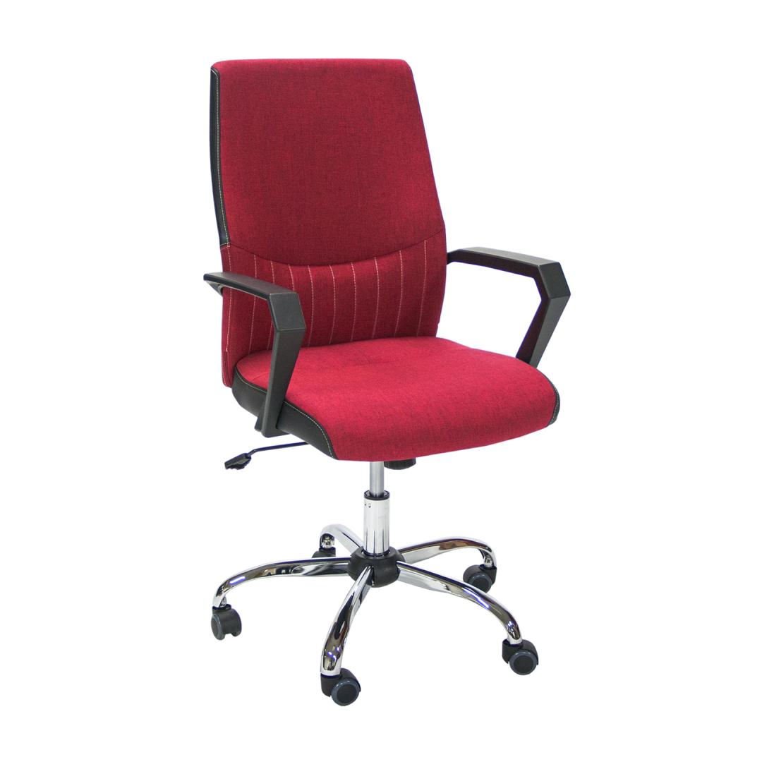 The upholstered seat and backrest of the chair are covered with red polyester fabric.