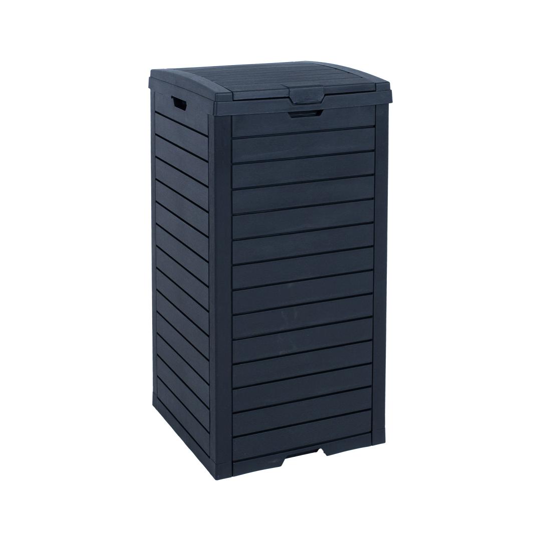 Trash bin GALA 41x41xH86cm/118L, black plastic with wood imitation.