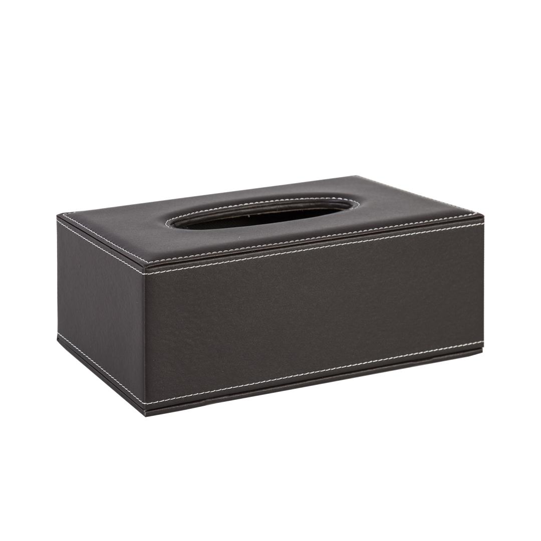 Tissue box WALTER 13.5x25xH9cm, dark brown. The tissue box is made of artificial leather. The dimensions of the product are 13.5x25xH9cm.