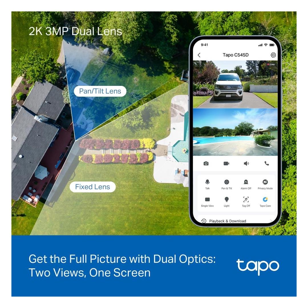 • 2K 3MP Dual Lens -  Capture the full picture with dual 2K high definition optics, monitoring two separate areas at the same time with just one device. Engineered to minimize blind spots for optimal coverage.