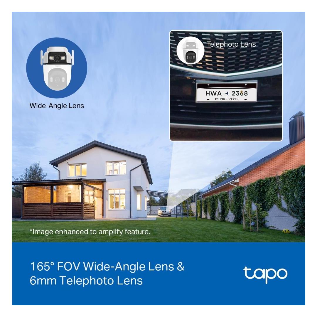• Wide-Angle & Telephoto Lens - With 165° FOV wide-angle lens and 6mm telephoto lens, it ensures all-around awareness and down-to-the-detail protection of your home.