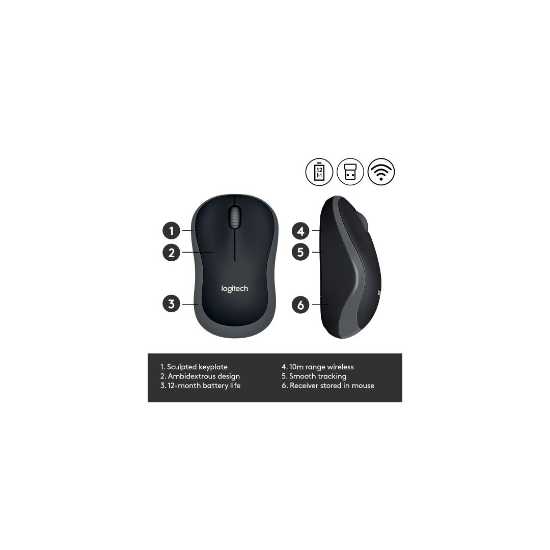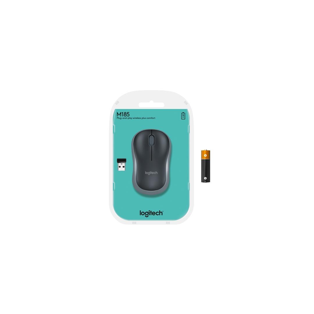 Logitech M185 Wireless Mouse, RF Wireless, 1000 DPI, Black/Grey