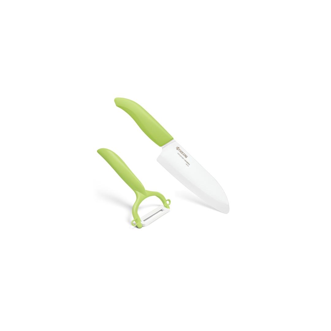 Kyocera FK140CP10NGR SANTOKU KNIFE & PEELER Set, knife (14 cm blade) and peeler, Green