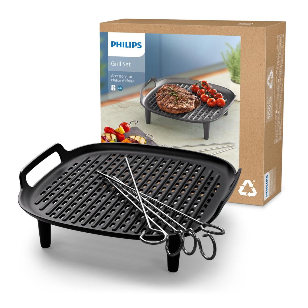 Perfectly grilled meat and vegetables all in one Take your Airfryer to the next level with our Grill Set for Airfryer 6.2 L. Master delicious grilled recipes. Prepare perfectly grilled meat and tasty vegetables in a quick and easy way.